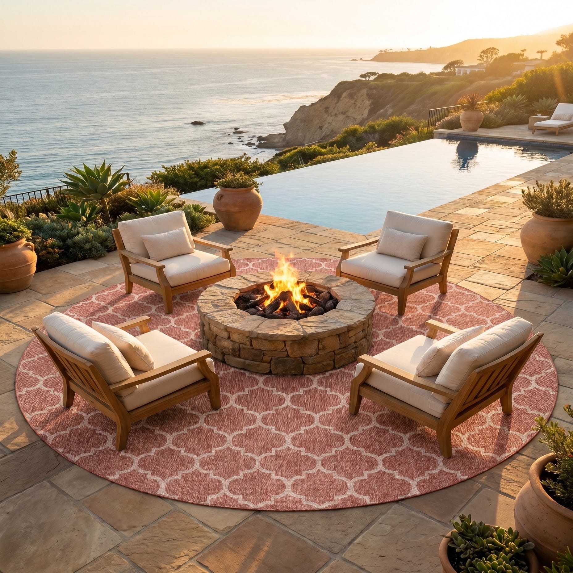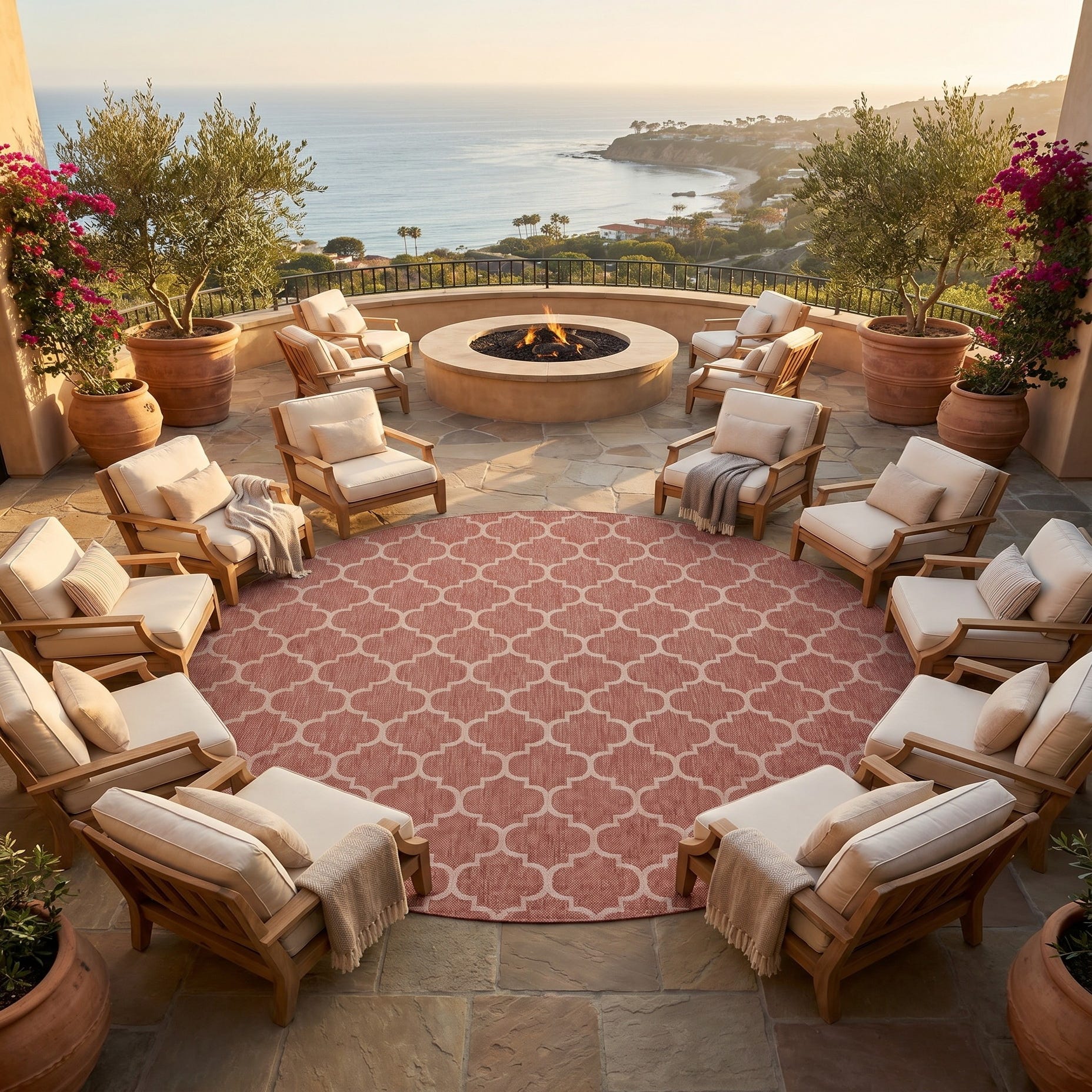 13' x 13' Easy-Clean Lattice Indoor / Outdoor Round Rug