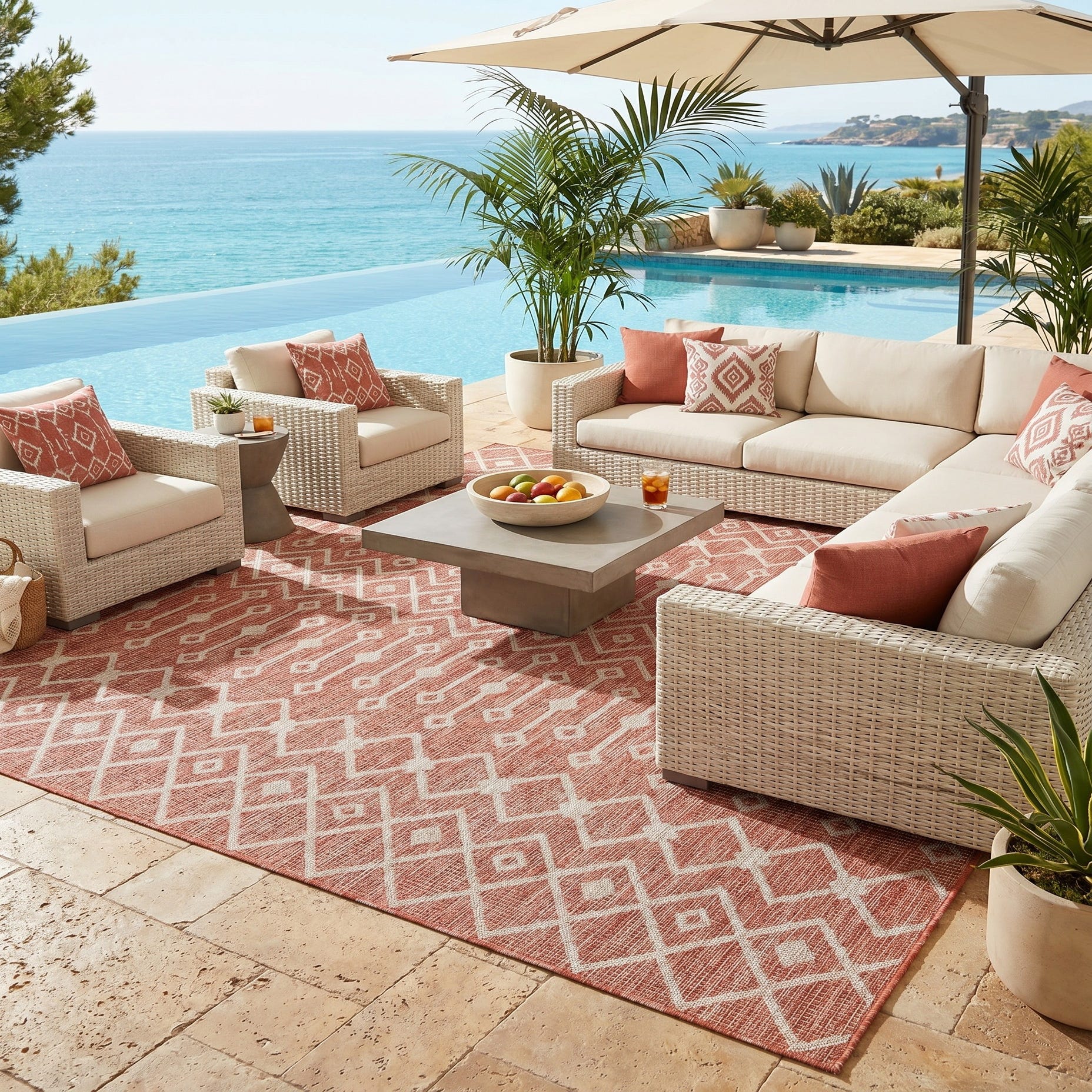 13' x 13' Easy-Clean Lattice Indoor / Outdoor Square Rug
