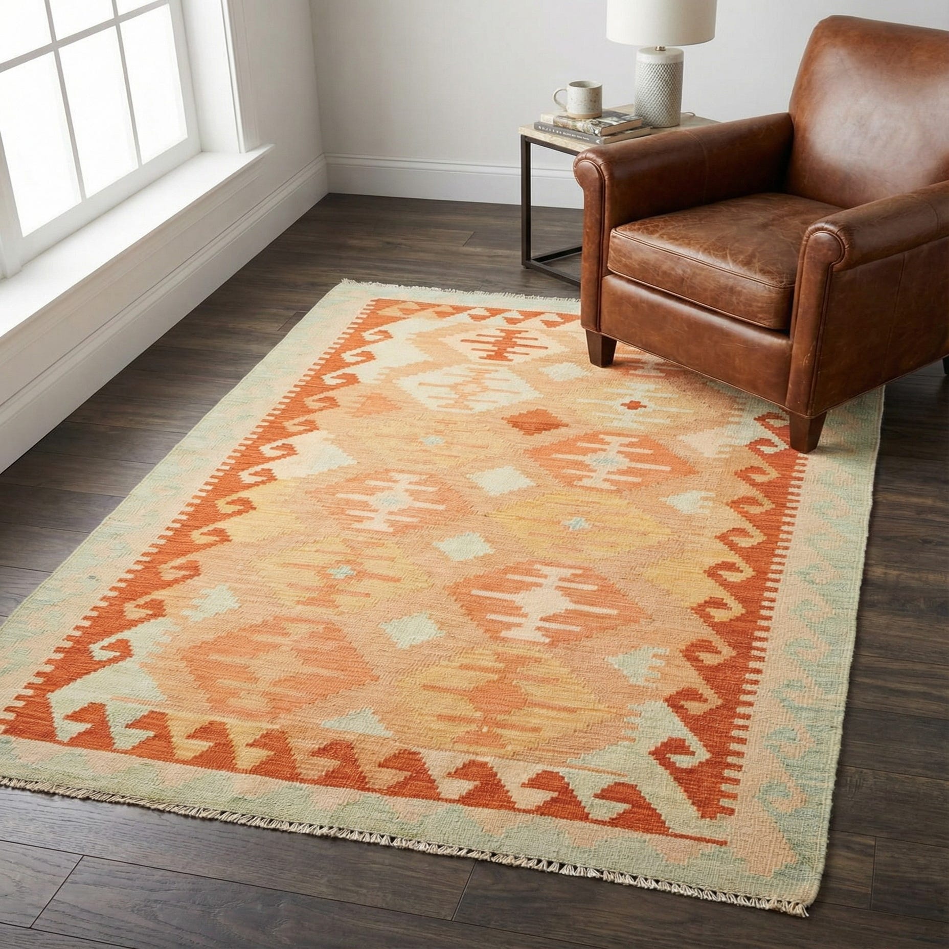 3' 2 x 4' 10 Hand Woven Kilim Waziri Wool Rug
