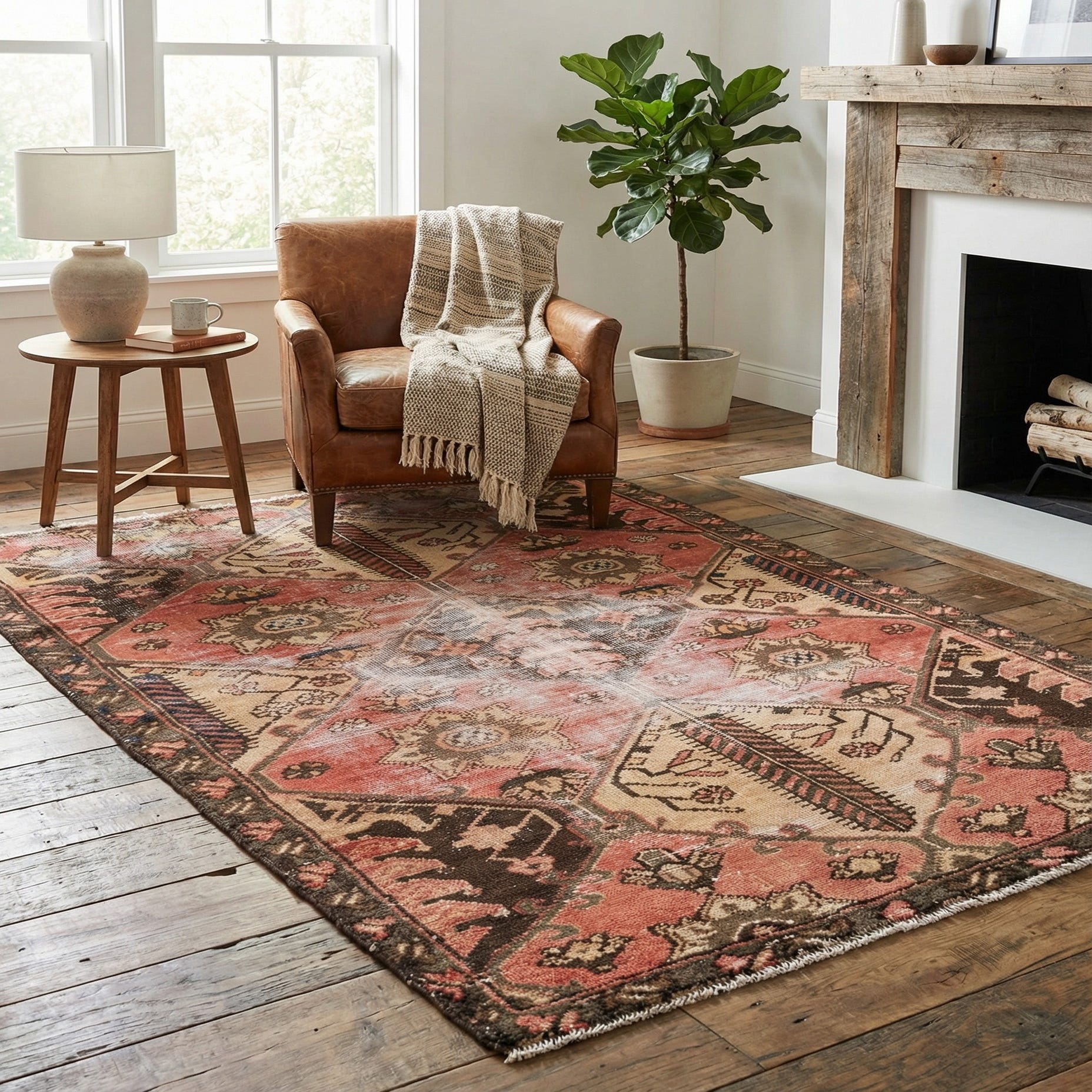 A 3x5 rectangular Ultra Vintage rug featuring a faded Persian pattern in shades of orange, red, and beige.