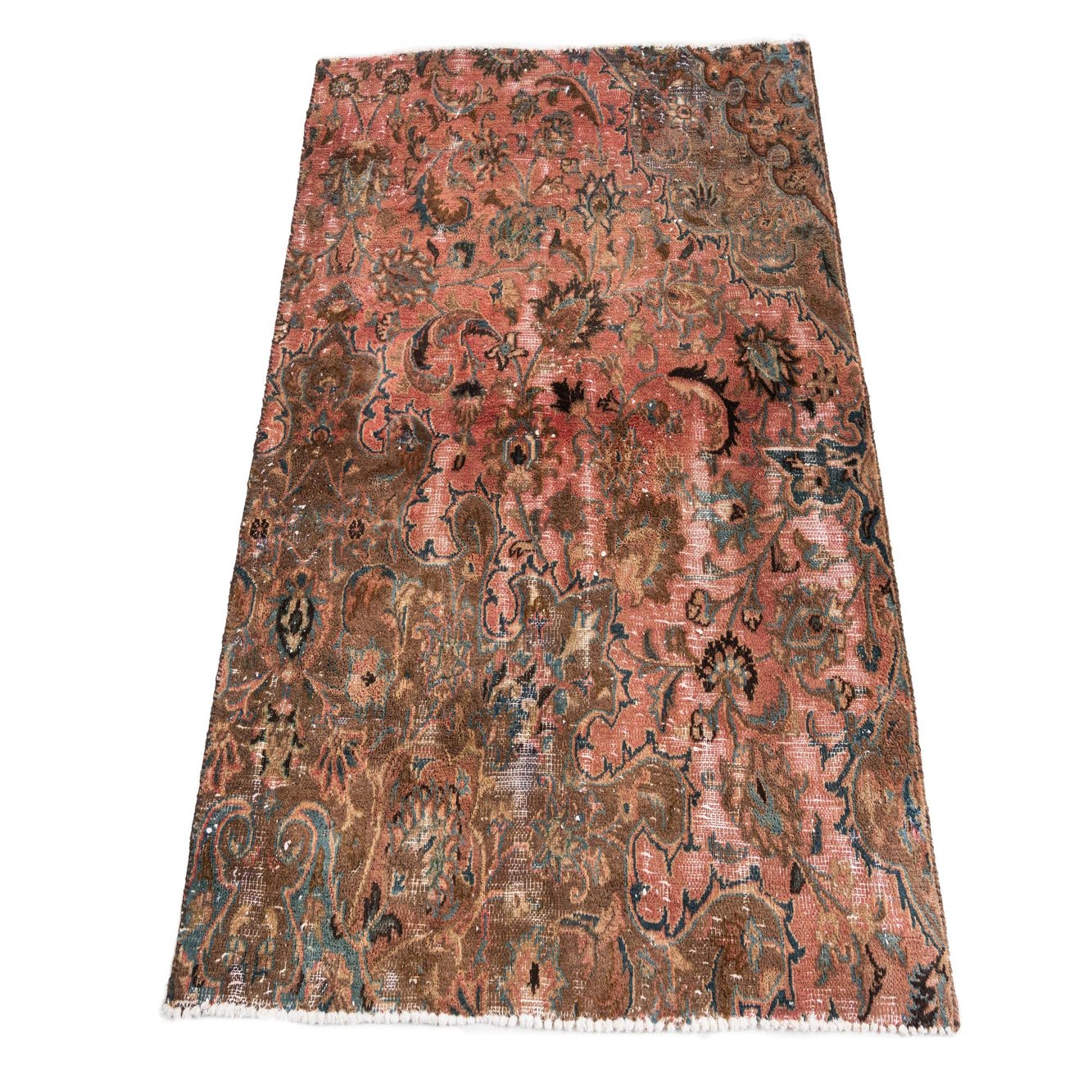This Persian Ultra Vintage rug is an antique Persian Rug that has been washed, over-dyed, and then shaved down to a low pile. Look at the detail pictures to fully appreciate the uniqueness of this piece.