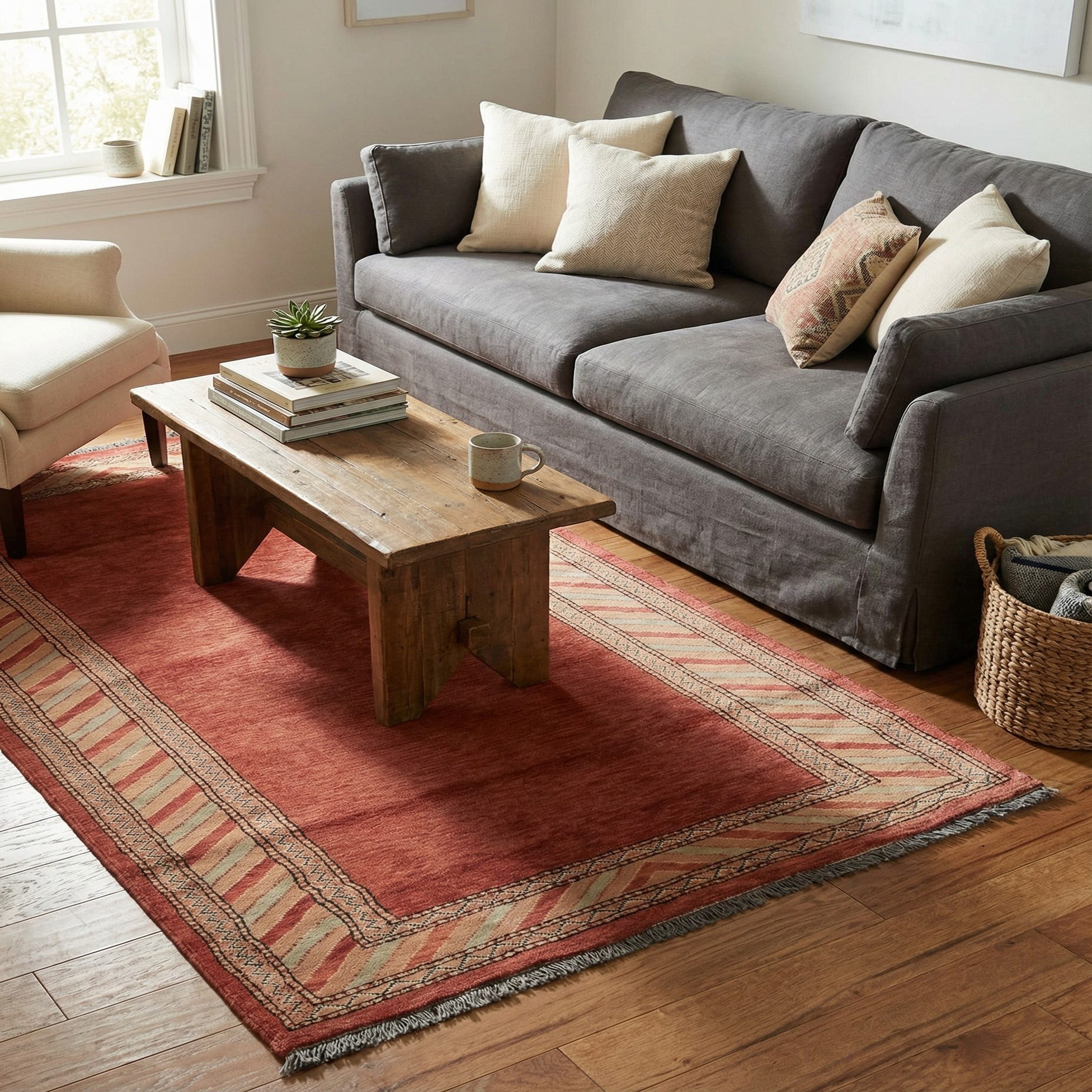 In terms of texture, the rug presents a dense pile that contributes to its comfort underfoot. The use of natural wool fibers ensures both resilience and a subtle sheen, which can fluctuate with the light and viewing angle.