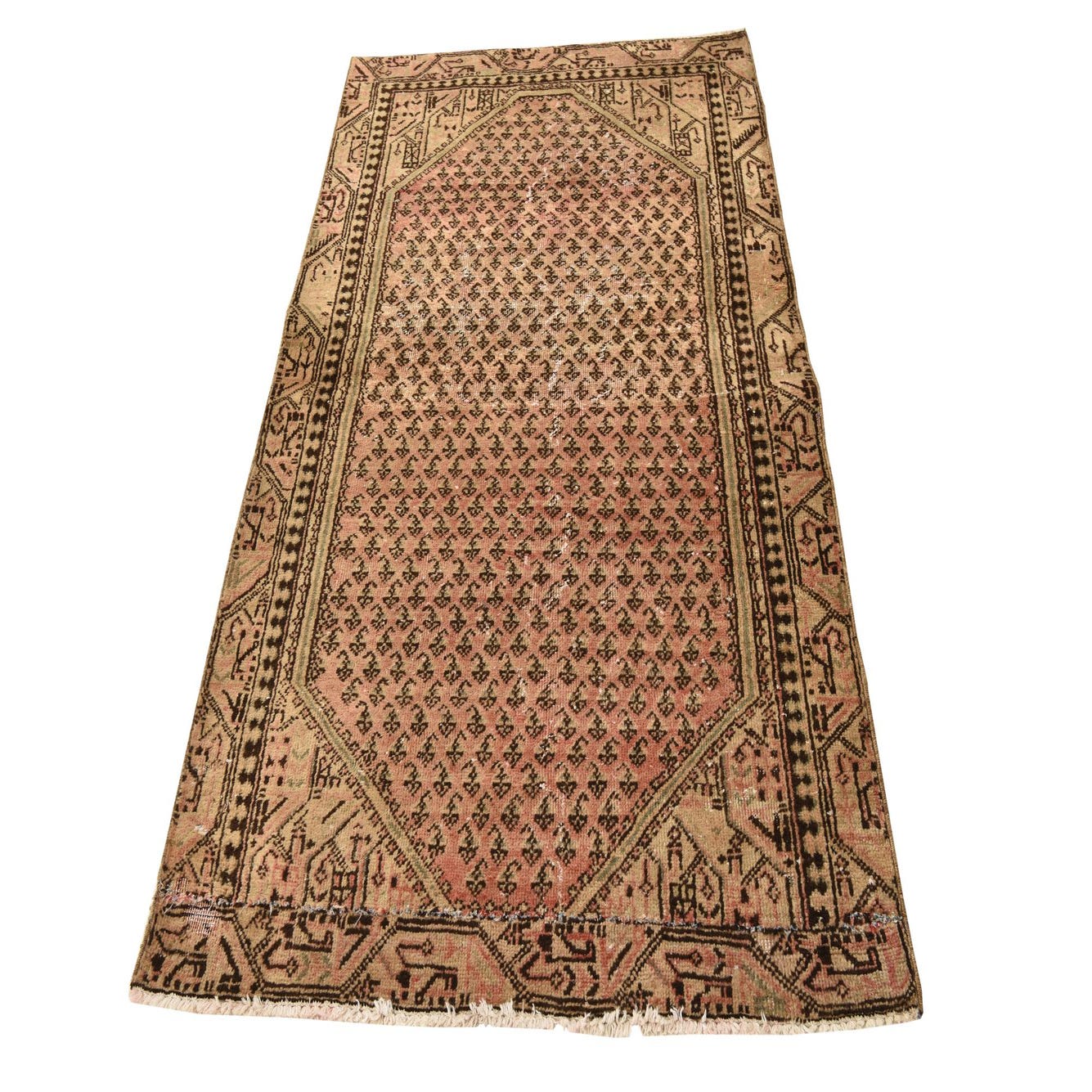 This Persian Ultra Vintage rug is an antique Persian Rug that has been washed, over-dyed, and then shaved down to a low pile. Look at the detail pictures to fully appreciate the uniqueness of this piece.