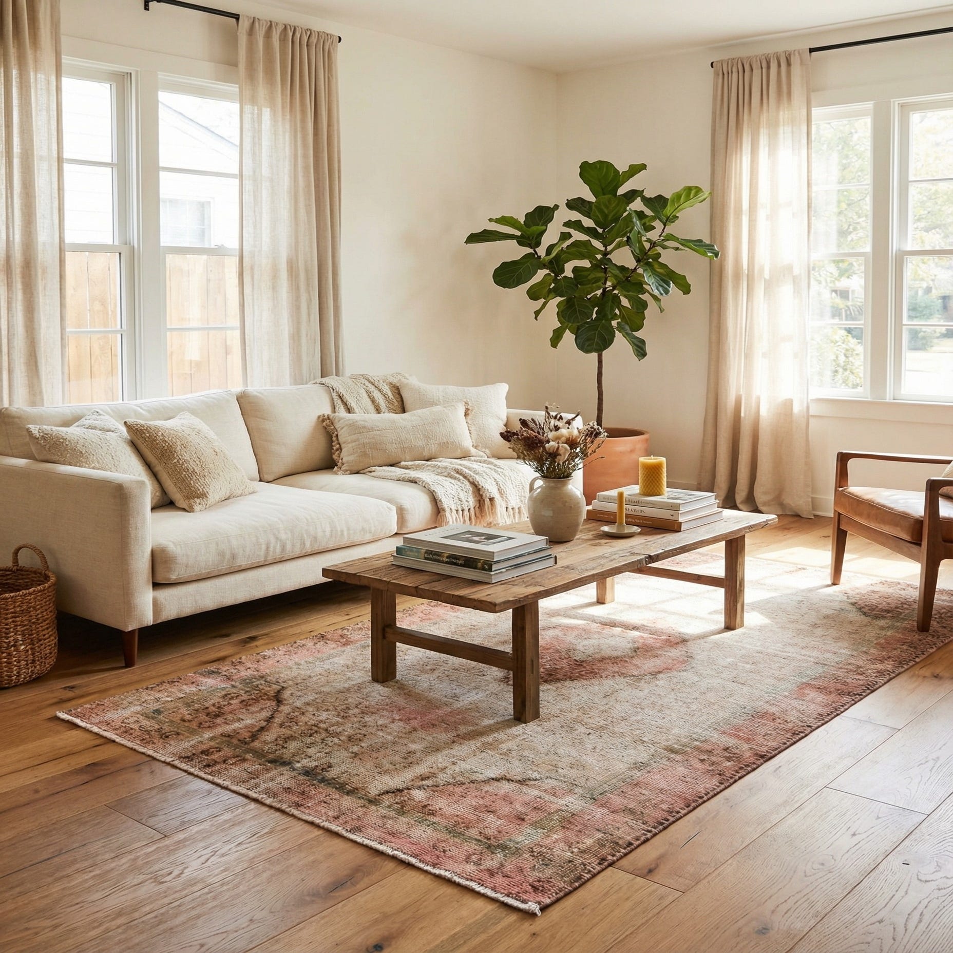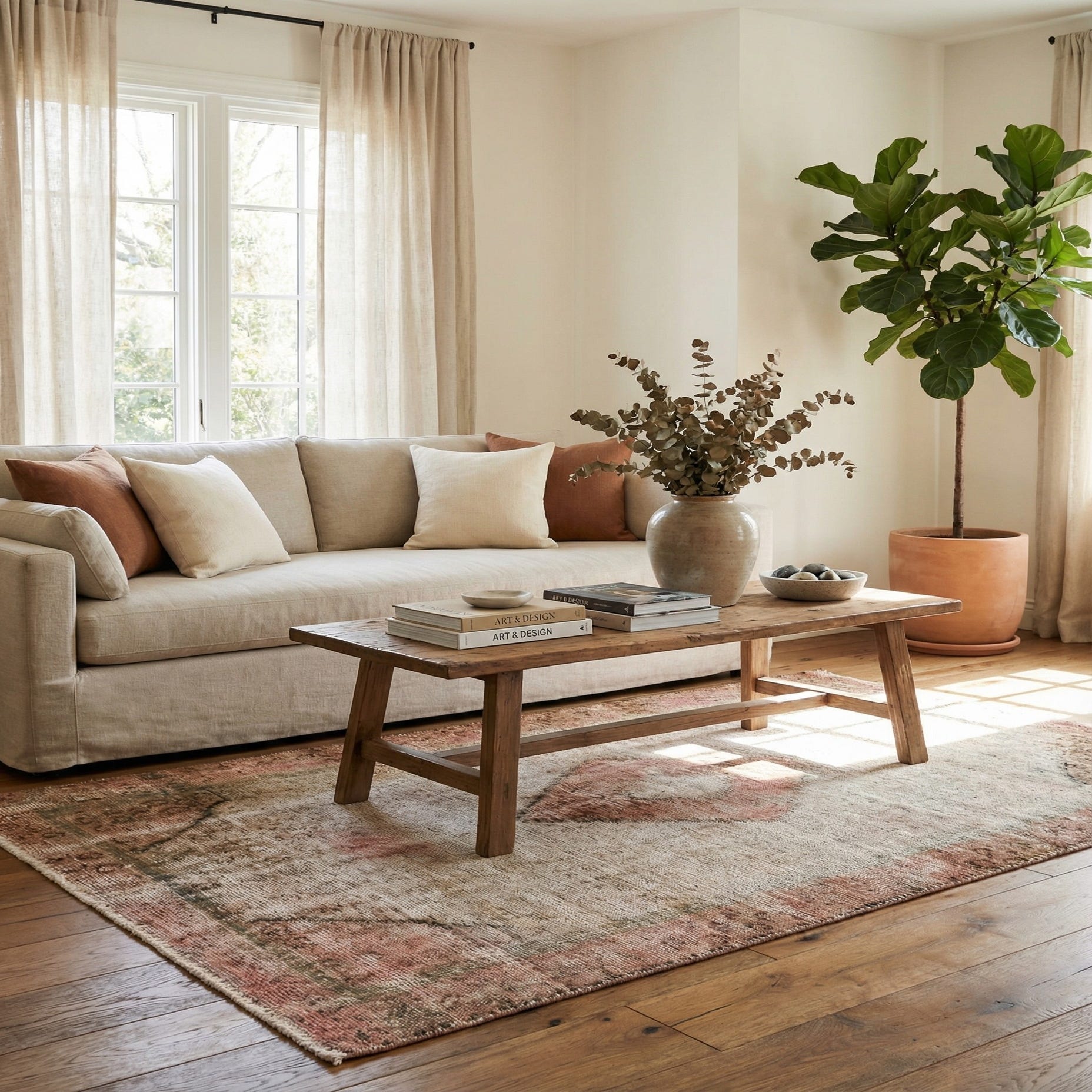 A 4x6 rectangular Ultra Vintage rug featuring a faded Persian pattern in oranges and reds on a neutral background.