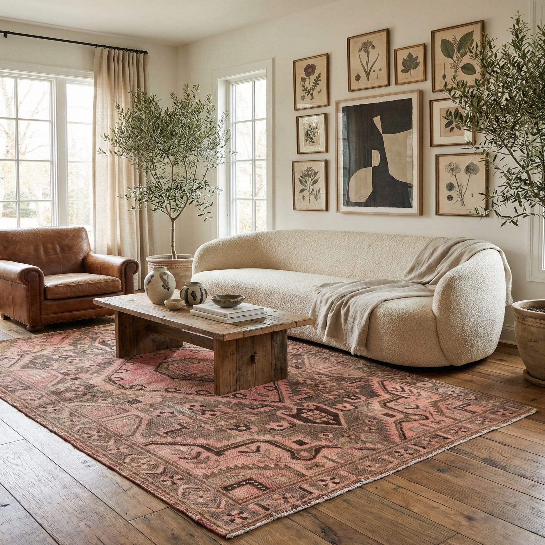 In terms of interior design scenarios, the warm hues and time-honored patterns of this piece would suit a range of styles from traditional to eclectic, and could be a focal point in a living room, study, or small dining area. Its rich earthy tones would nicely complement interiors with wooden elements, leather furnishings, or a palette of natural, organic colors.