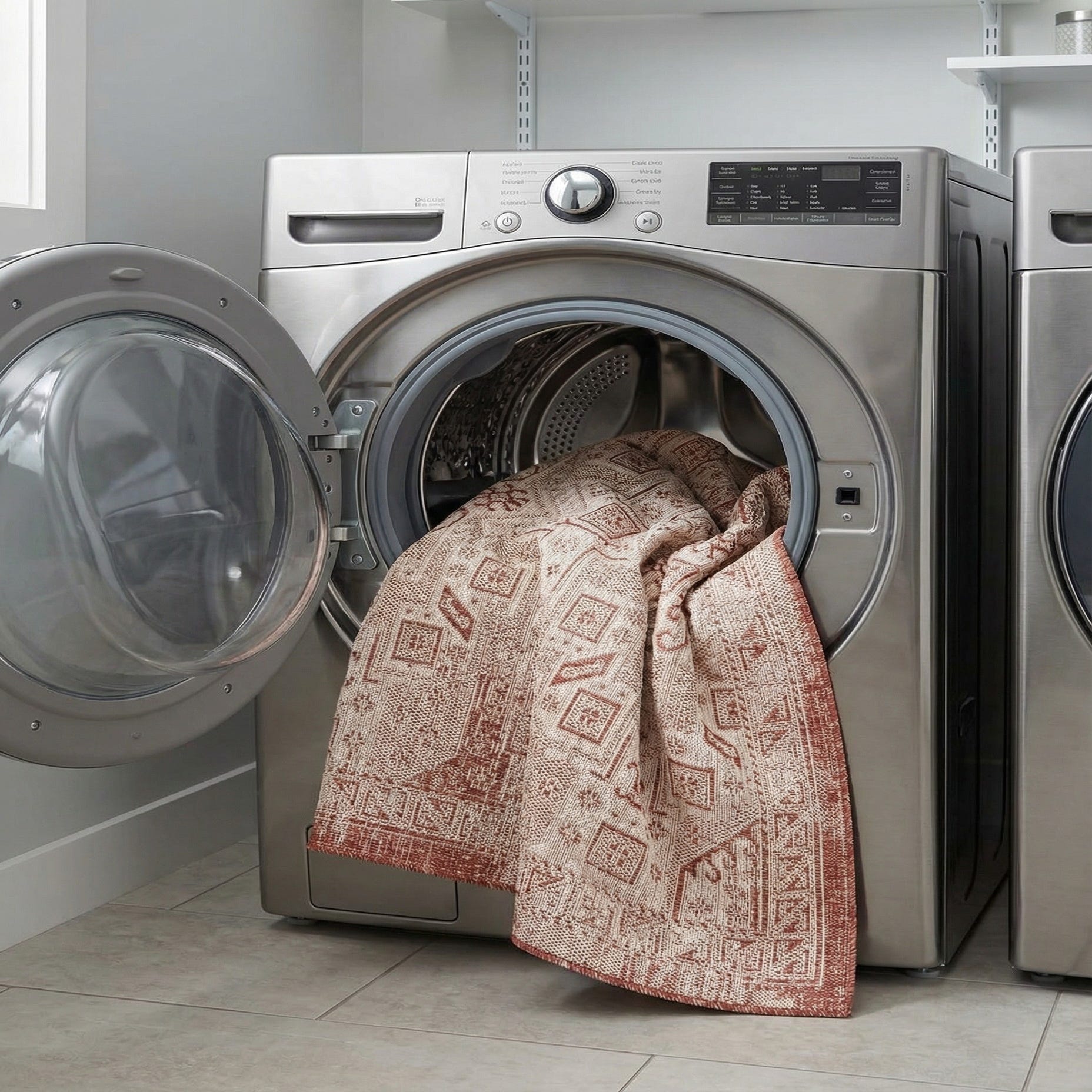 Given its pet-friendly and shed-free properties, this rug can also be efficiently used in indoor settings, blending seamlessly with both contemporary and traditional decor. The rust red and ivory color palette of the Outdoor Aztec rug complements neutral furniture pieces and natural textures, creating a cohesive look in living spaces, dining areas, or entryways.