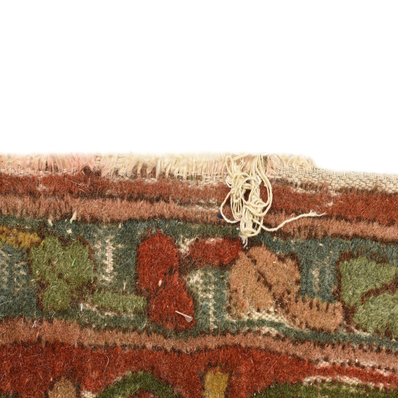 In Very Good condition, with Low Pile, Missing Fringe, Small Spot Damage, Hole. Further details can be seen in the pictures