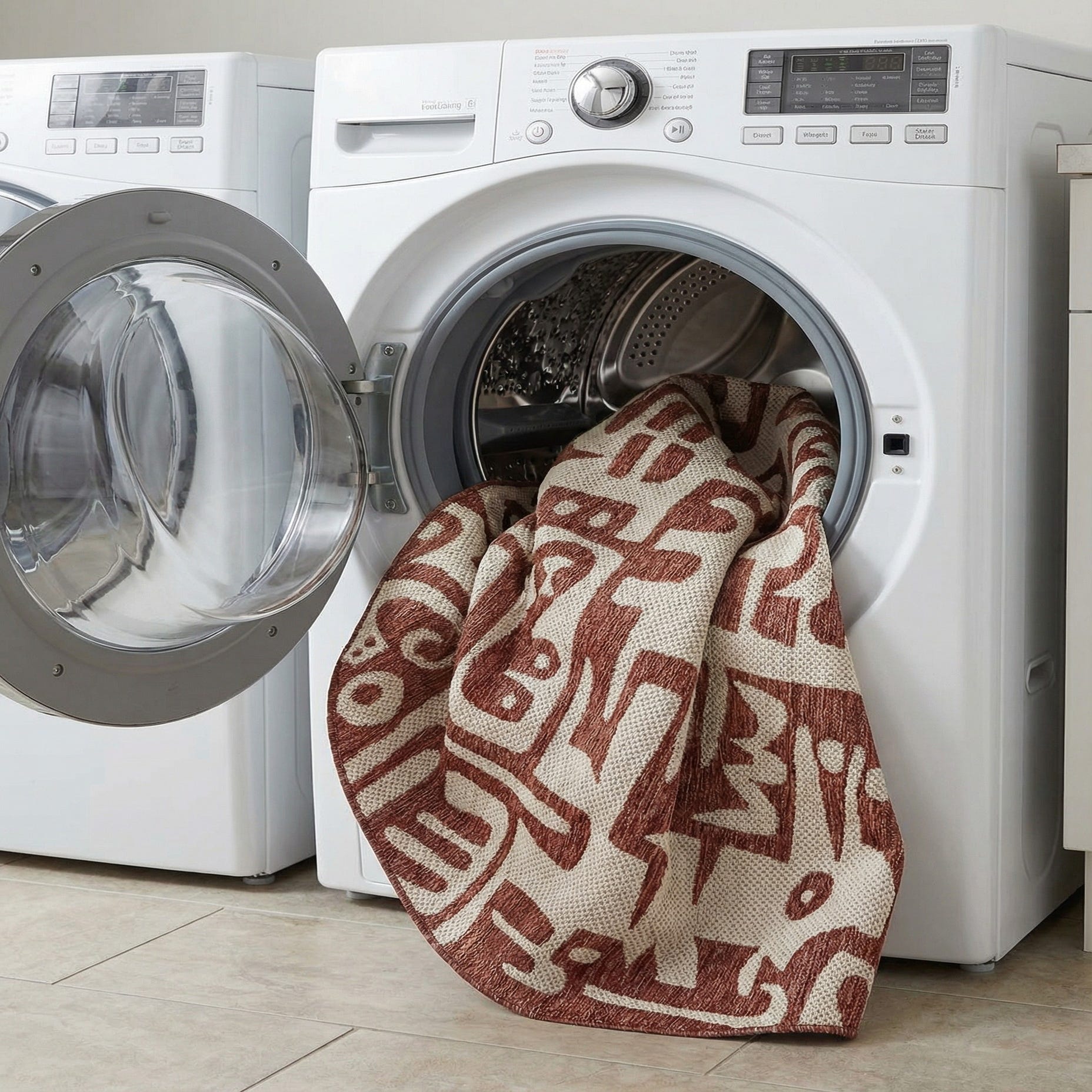 Designed for casual indoor or outdoor spaces, this rug pairs well with warm wood or rattan furniture, linen cushions, and terracotta accents for a relaxed, earthy look. It also complements streamlined metal or mid-century modern pieces for a fresher, more graphic aesthetic. Place it beneath a bistro set on a covered patio, anchor a seating arrangement on a sunroom floor, or layer it in a living area to introduce color and pattern without overwhelming the room.