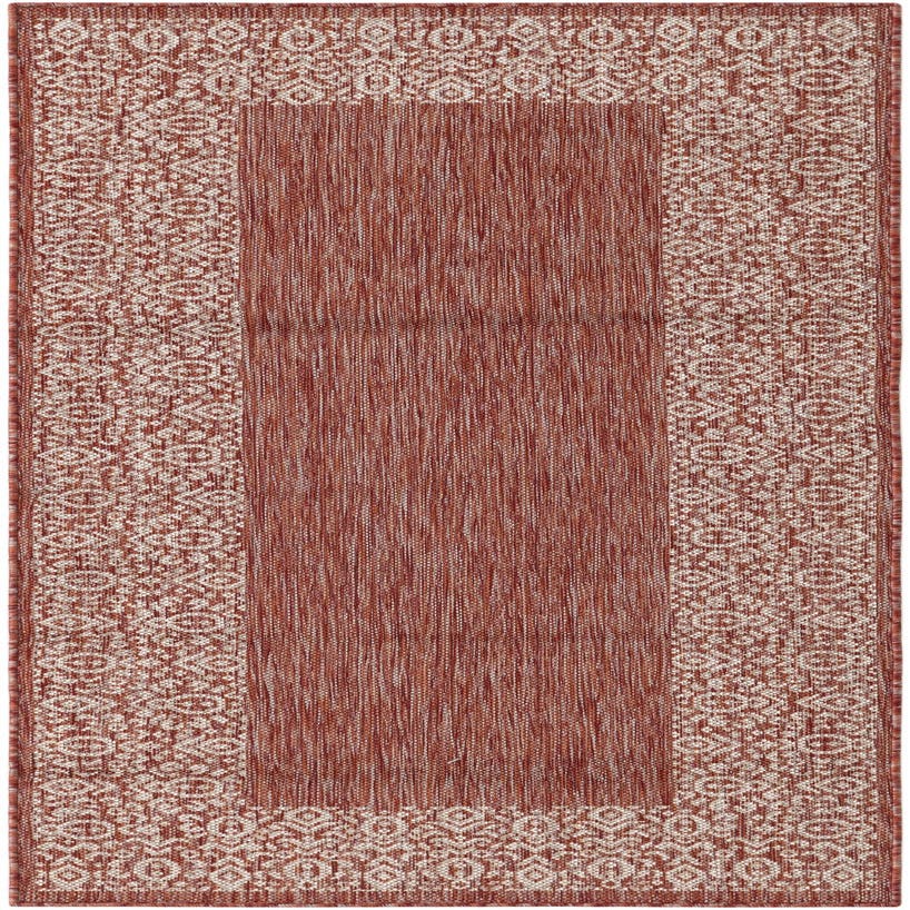 Primary color is Rust Red. Colors in this rug include: Rust Red, Beige.