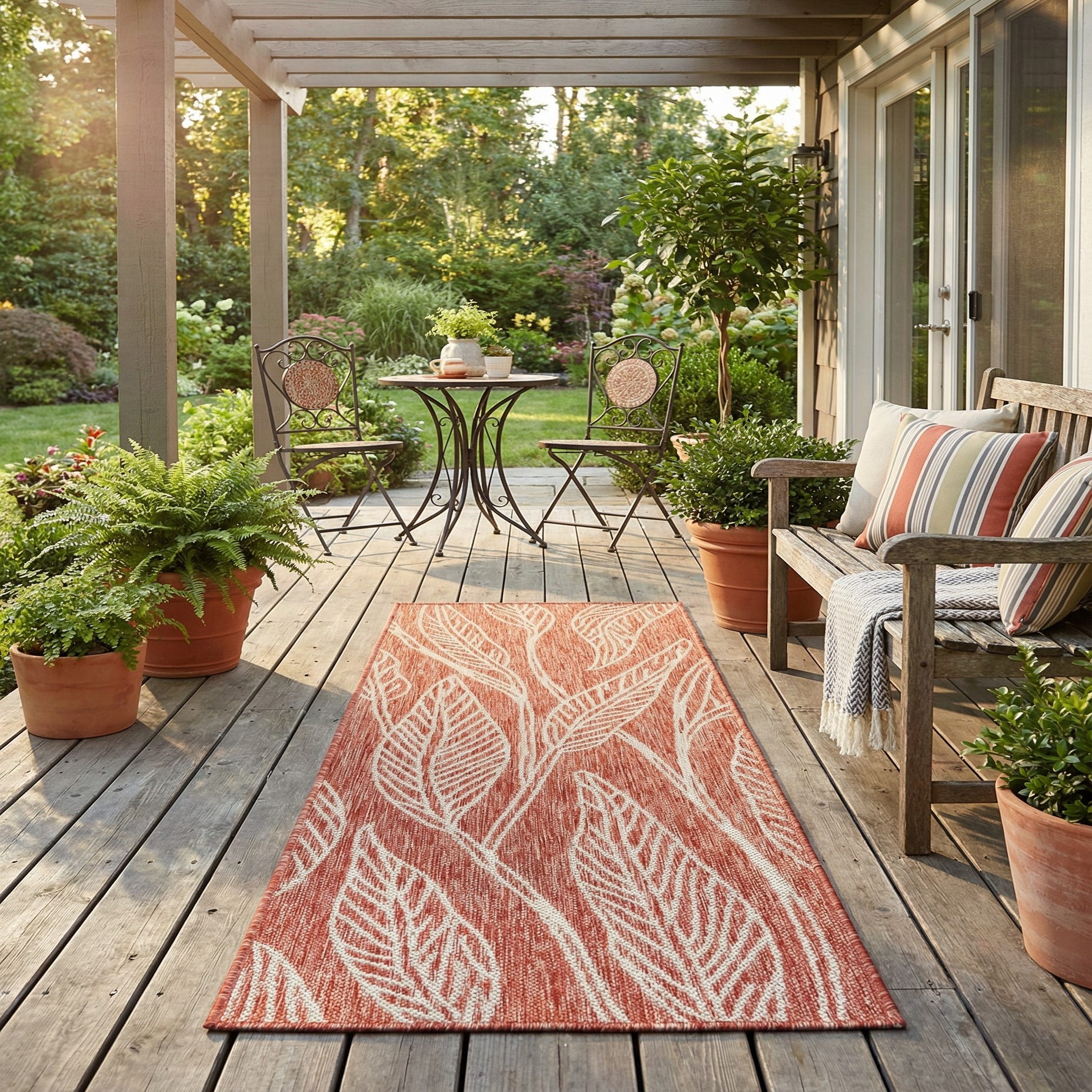 Place this runner in a hallway or entry to guide circulation, layer it down a kitchen aisle, or use it on a covered porch to anchor seating. It pairs naturally with warm wood floors and leather accents, complements neutral textiles and rattan furniture, and provides a bold contrast against cool grays or soft cream walls for a contemporary botanical look.