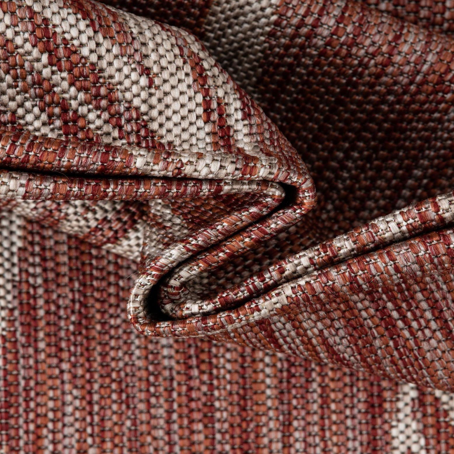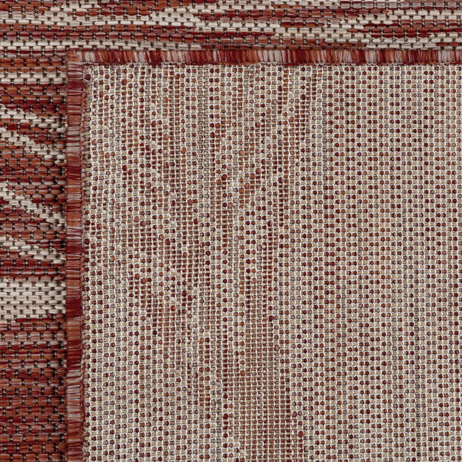 Primary color is Rust Red. Colors in this rug include: Rust Red, Gray.