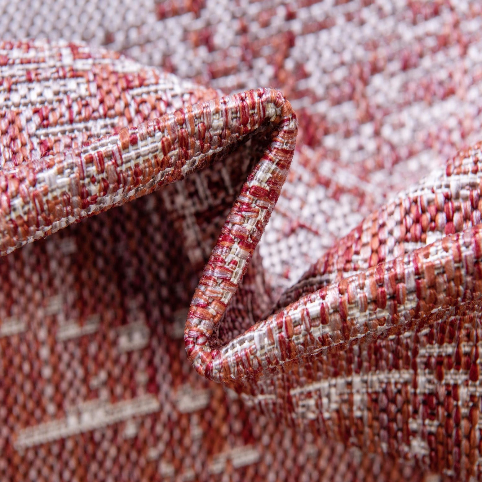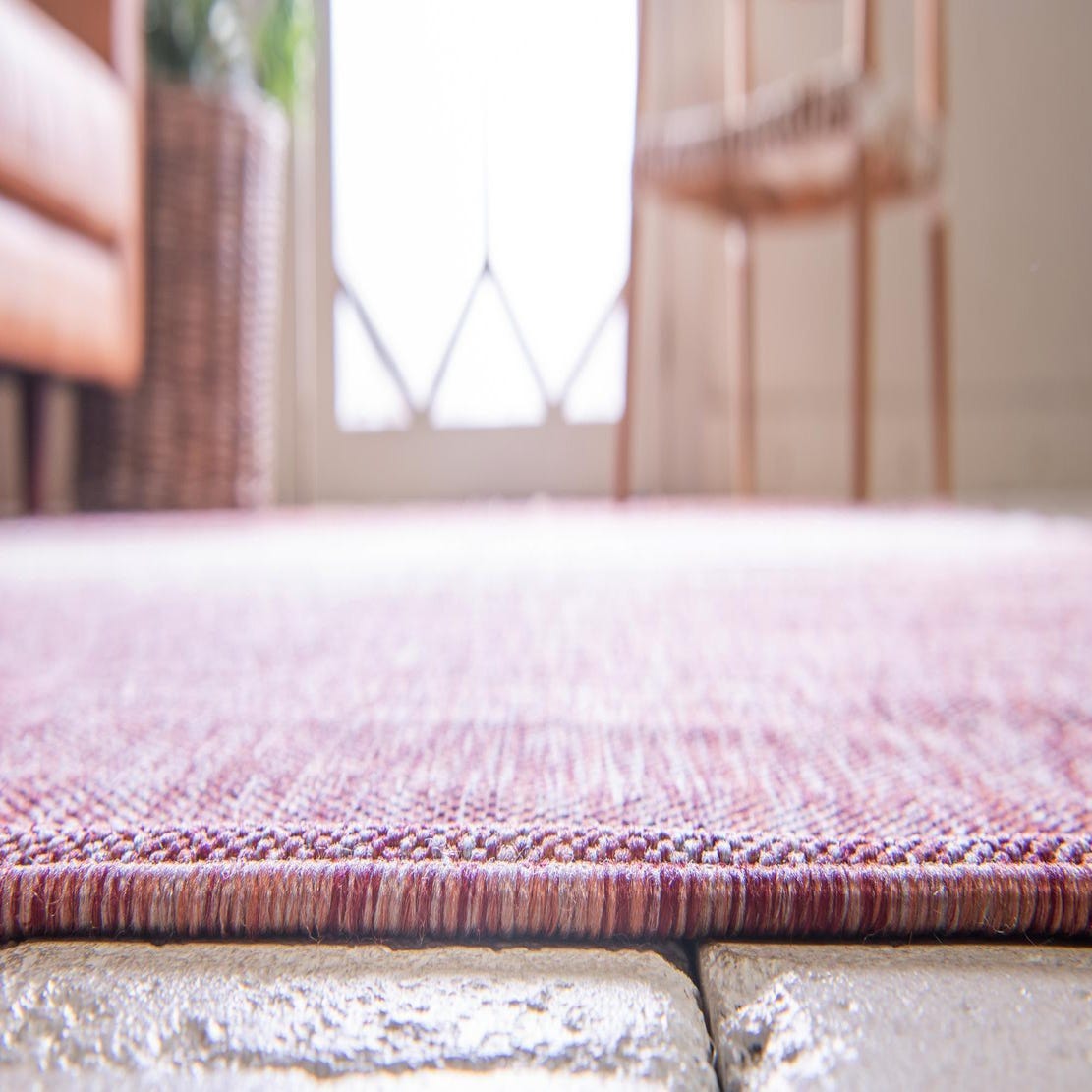 This runner fits well in contemporary and transitional schemes—pair it with light oak or charred wood floors and streamlined furniture to let the rust tone bring warmth, or use it to anchor an entry hall or narrow kitchen corridor where a touch of pattern is needed. It also complements patio seating or covered outdoor living areas, bringing a balanced mix of color and texture to both indoor and sheltered outdoor settings.