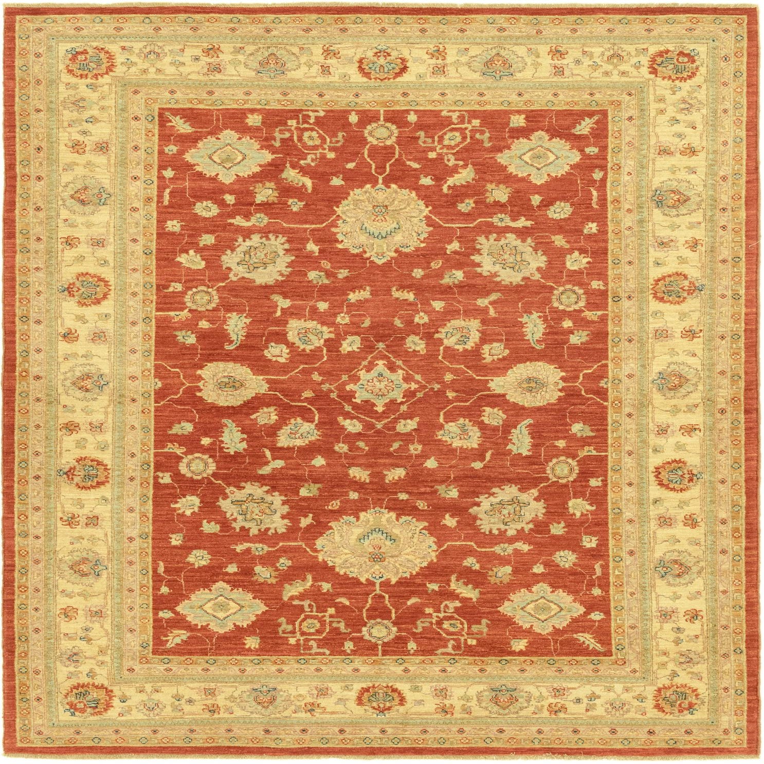 The Peshawar Ziegler rug is a hand knotted piece crafted from 100% hand spun wool, showcasing a blend of traditional sophistication and artisanal craftsmanship. This 6x9 rug features a Rust Red background that brings warmth and depth to the design, complemented by an array of detailed motifs and border accents in Beige, Brown, Light Green, Navy Blue, Light Brown, and Gold. The pattern presents an assortment of floral and geometric elements that evoke a sense of antique elegance suitable for a variety of interior styles, from classic to contemporary.