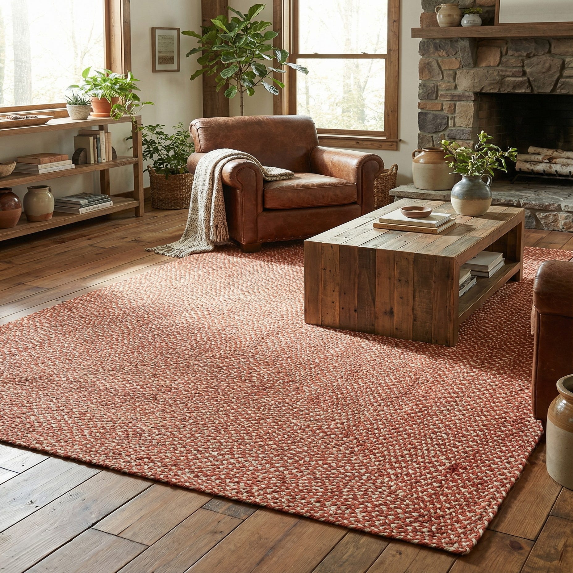 Well-suited for casual and transitional interiors, this rug grounds living rooms, entryways, sunrooms, or dining areas with warm, earthy color. Pair it with warm wood furniture and neutral linens for a cozy farmhouse look, layer it under rattan or woven seating for a relaxed coastal vibe, or use it to add texture to a bohemian or modern eclectic space with navy or olive accents. The braided construction and natural tones make it an easy layering piece alongside matte metals, soft textiles, and woven accessories.