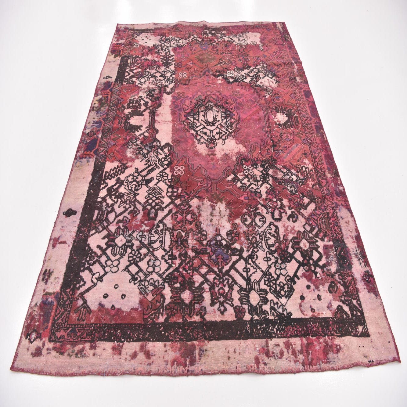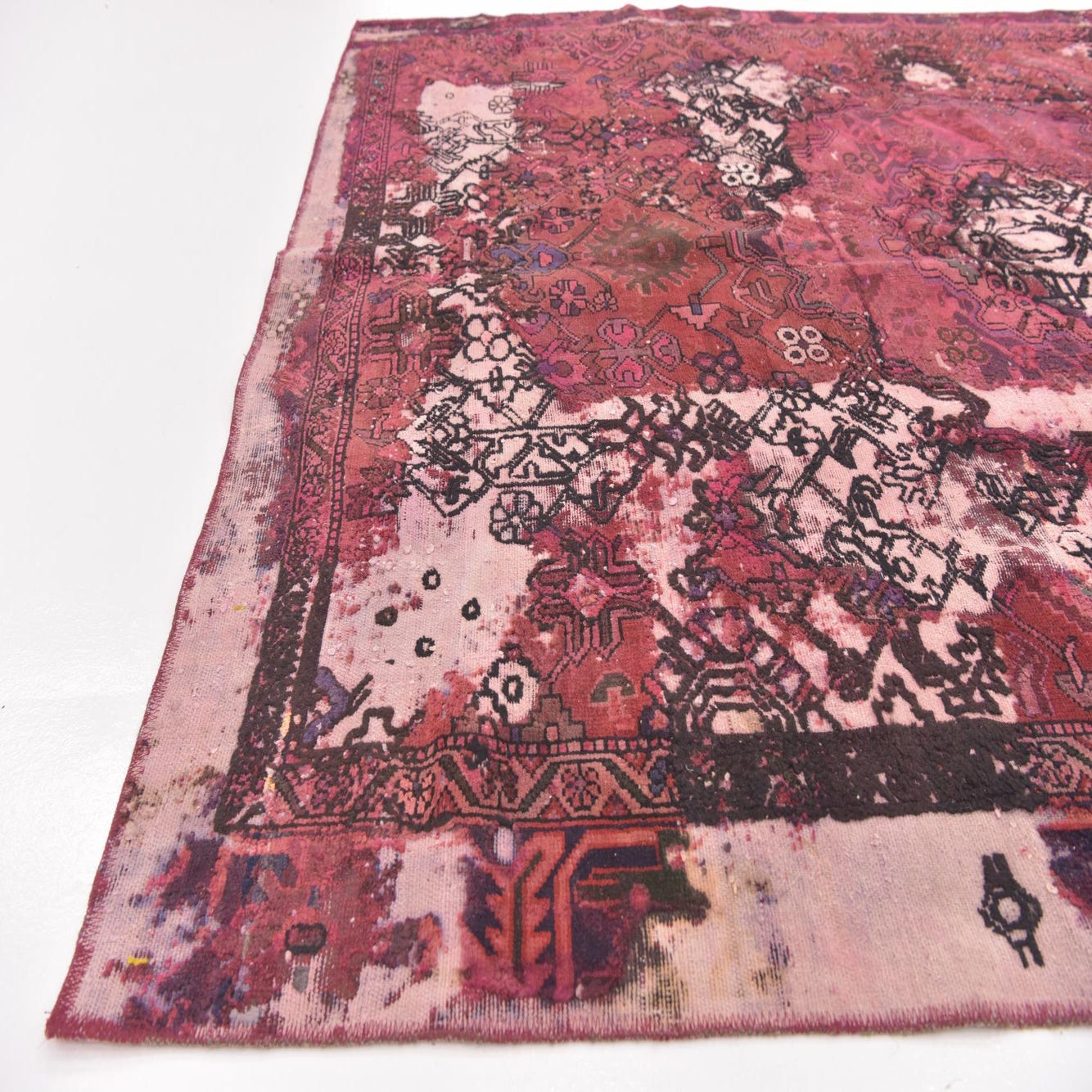 This Persian Ultra Vintage rug is an antique Persian Rug that has been washed, over-dyed, and then shaved down to a low pile. Look at the detail pictures to fully appreciate the uniqueness of this piece.