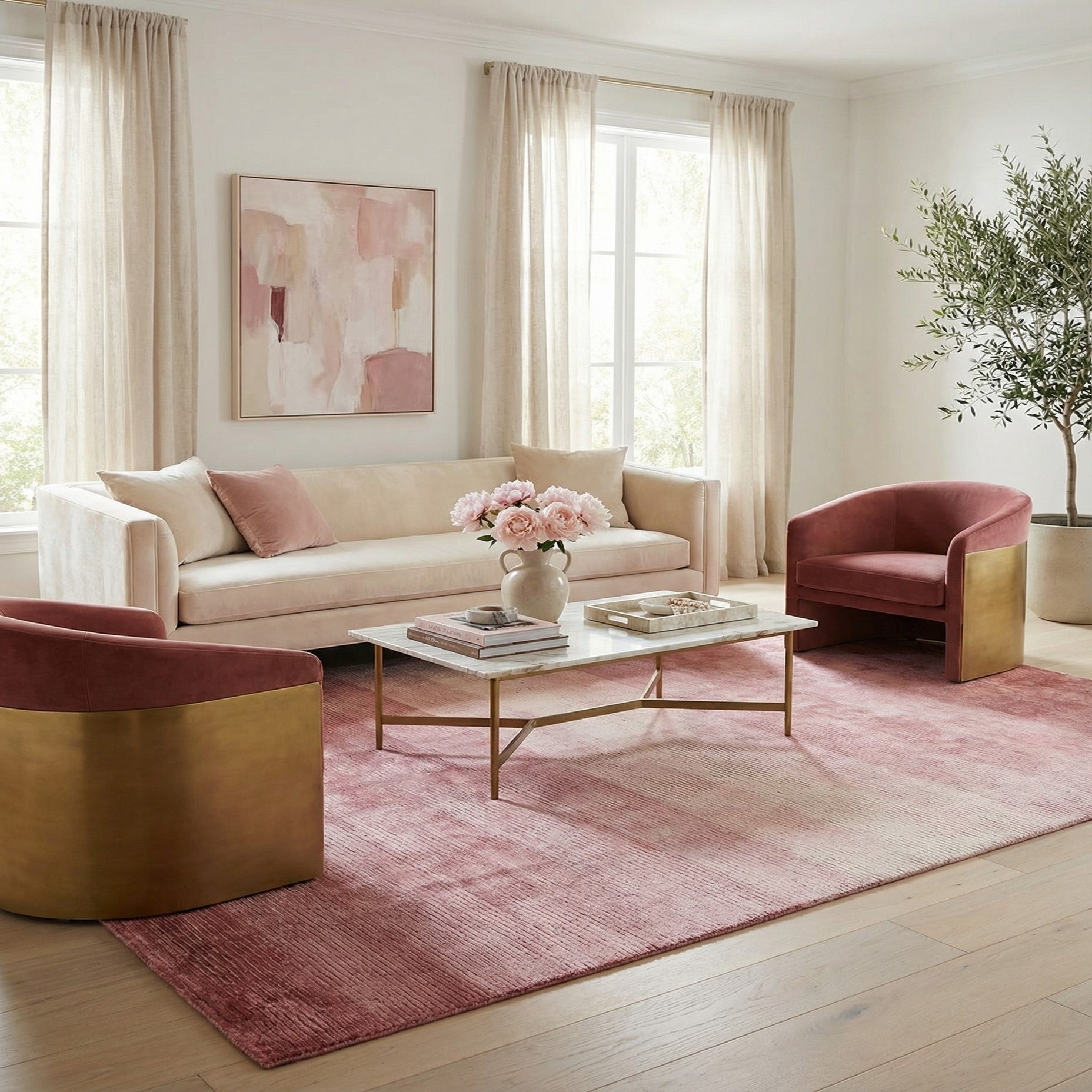A 7x10 rectangular Darya rug in shades of orange and red, featuring a modern, subtly striped pattern.