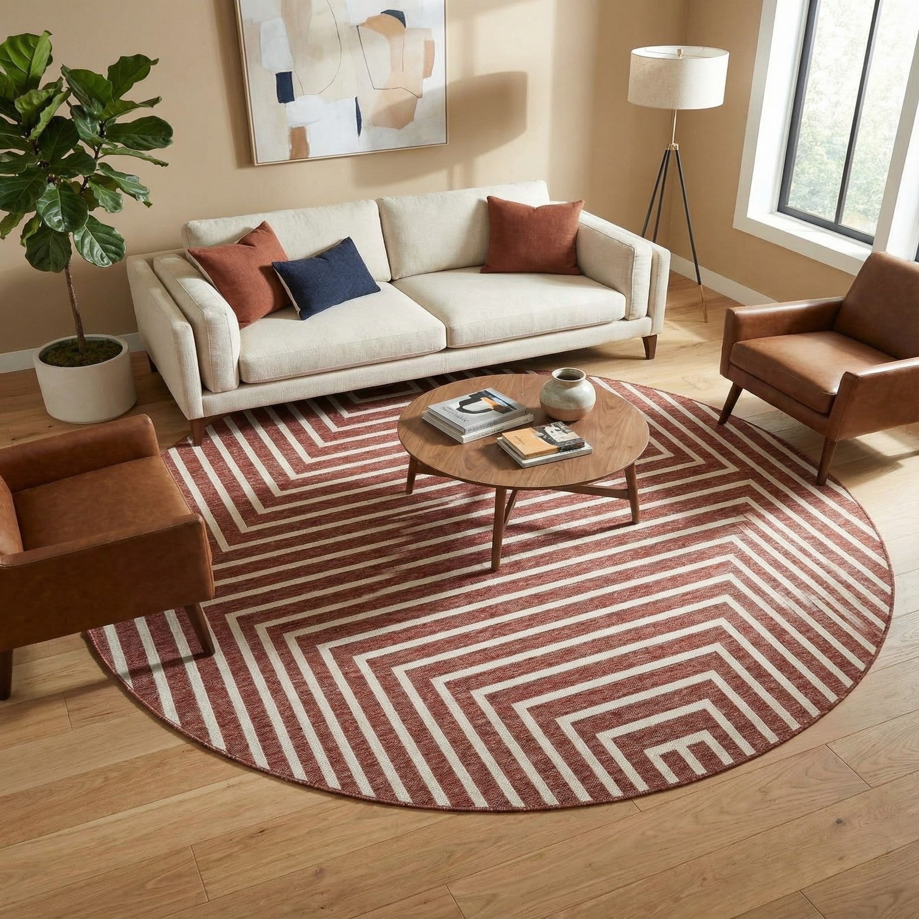 7' 10 x 7' 10 Washable Modern Indoor / Outdoor Round Rug