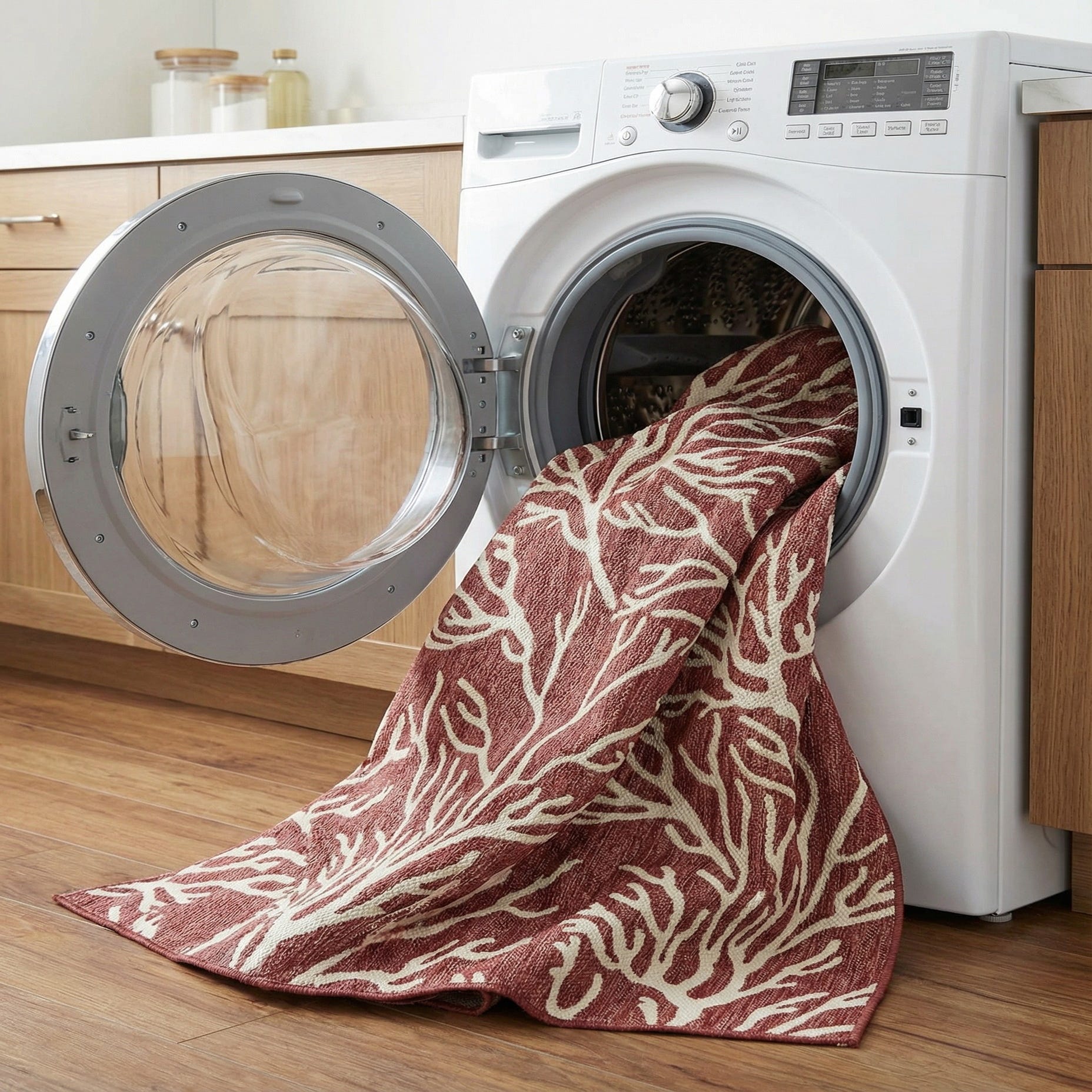 This 8x10 area rug from the Outdoor Coastal Collection presents a dynamic coral branch pattern set against a rich rust red background. The contrasting ivory motifs are inspired by the natural forms of sea life, offering an organic and invigorating design ideal for enhancing outdoor living spaces. Crafted with 100% polypropylene, this machine-woven rug is purpose-built to withstand outdoor elements, ensuring durability and easy maintenance.