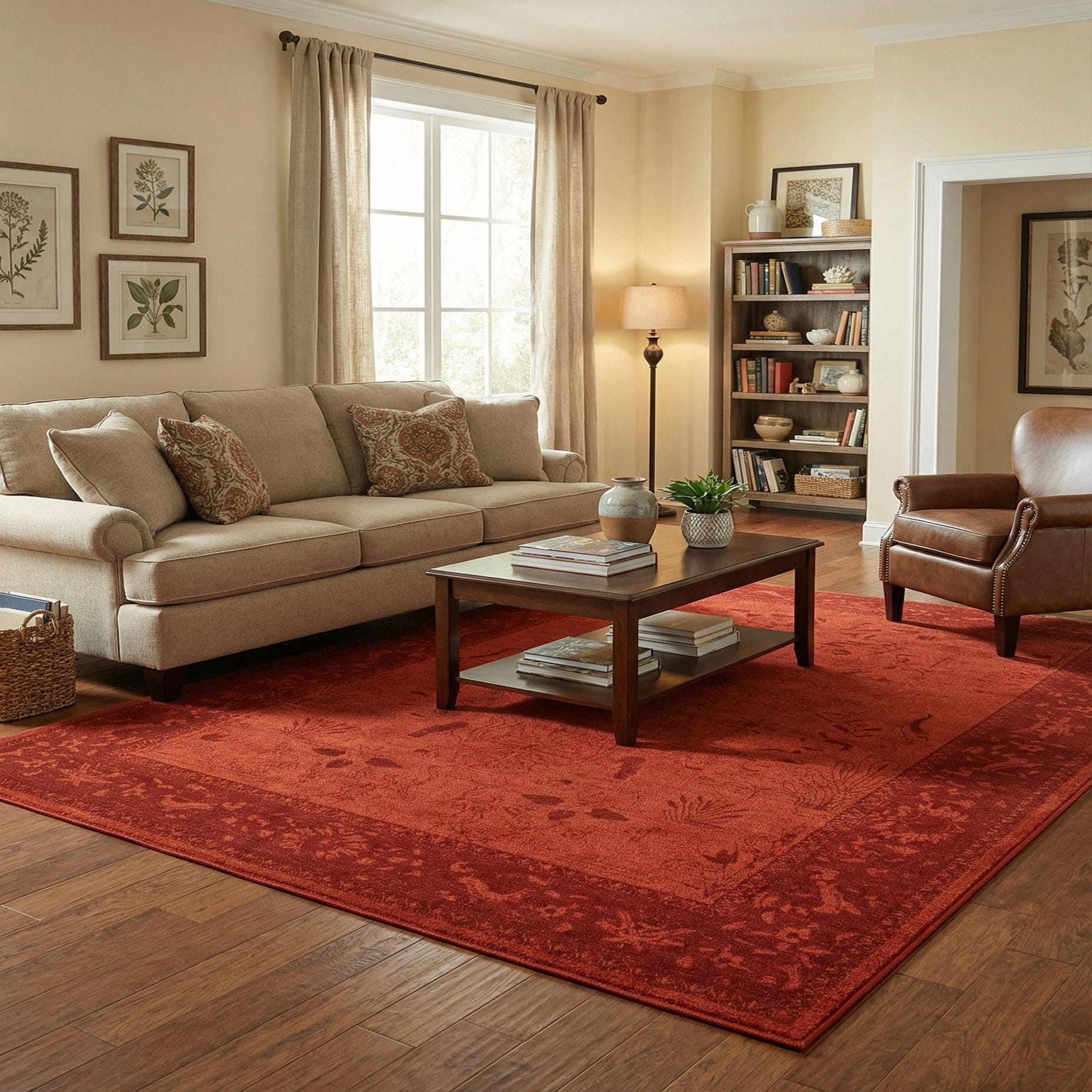 The pile is low-profile and tightly woven, offering a smooth, slightly dense texture that holds pattern definition and feels comfortable underfoot. Machine-made from 100% polypropylene, the rug is well suited for everyday living — place it under a coffee table to anchor a seating area, beneath a dining table to add warmth to mealtime, or layered over hardwoods to introduce color and depth. It pairs naturally with warm wood finishes, leather or neutral upholstery, and both traditional and eclectic interiors that benefit from rich, earthy tones.