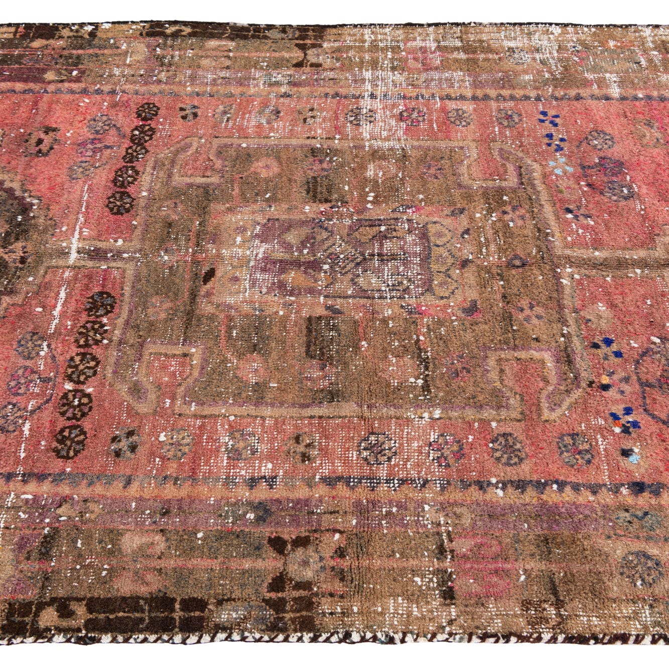 This Persian Ultra Vintage rug is an antique Persian Rug that has been washed, over-dyed, and then shaved down to a low pile. Look at the detail pictures to fully appreciate the uniqueness of this piece.