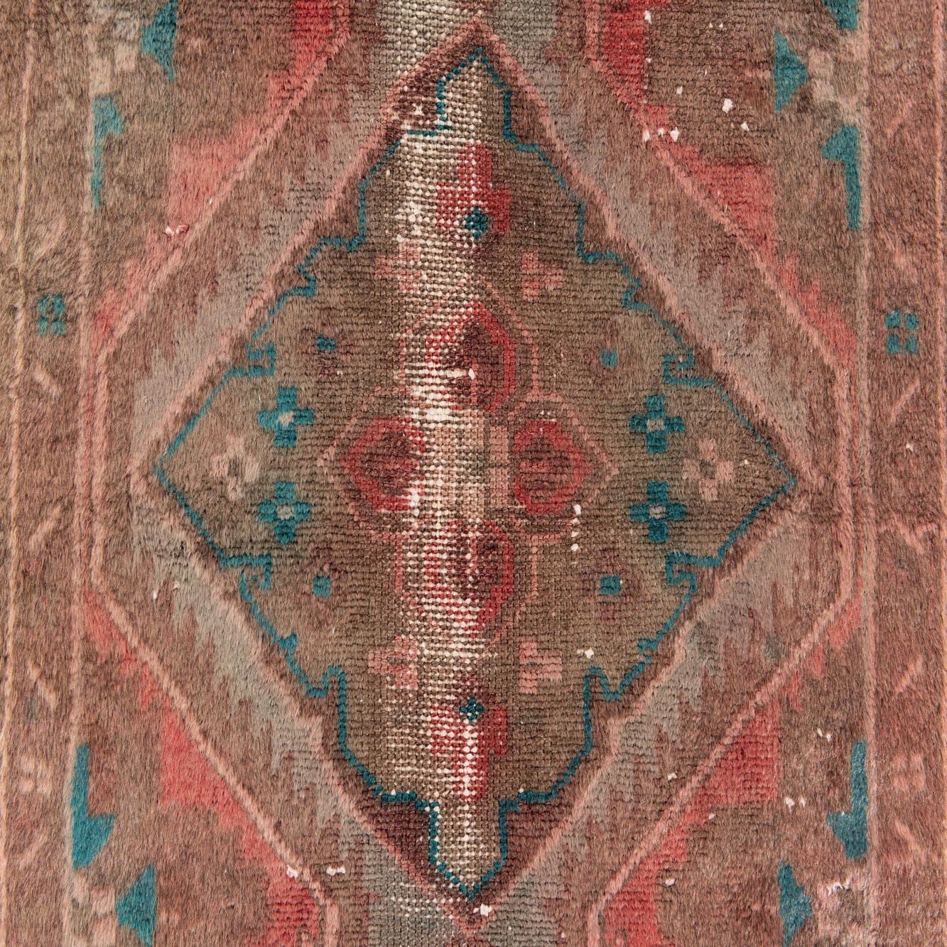 Primary color is Rust Red. Colors in this rug include: Rust Red, Beige, Brown, Teal.
