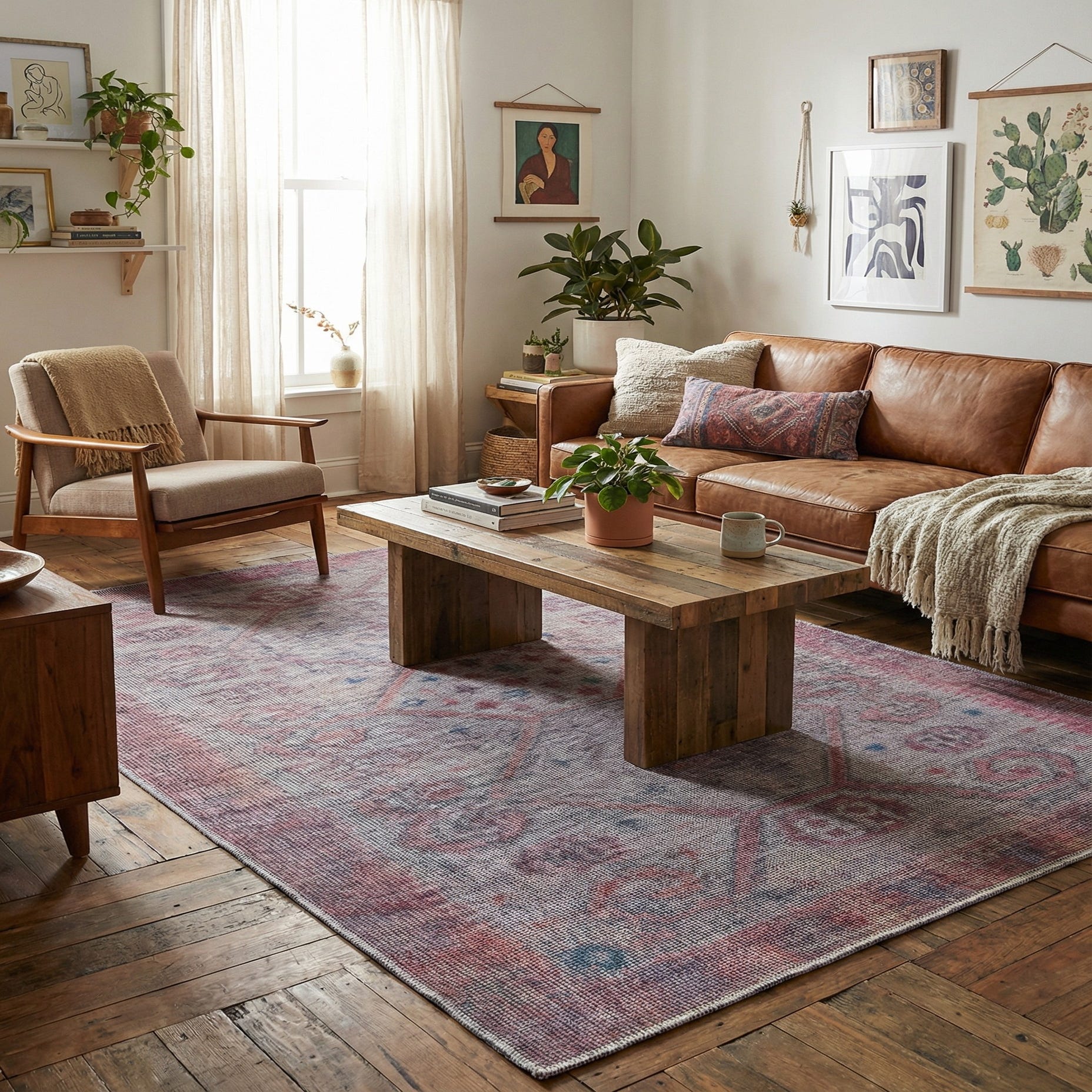 A 4x6 rectangular Rugs.com Sisu rug featuring a rust red and beige Southwestern tribal pattern.