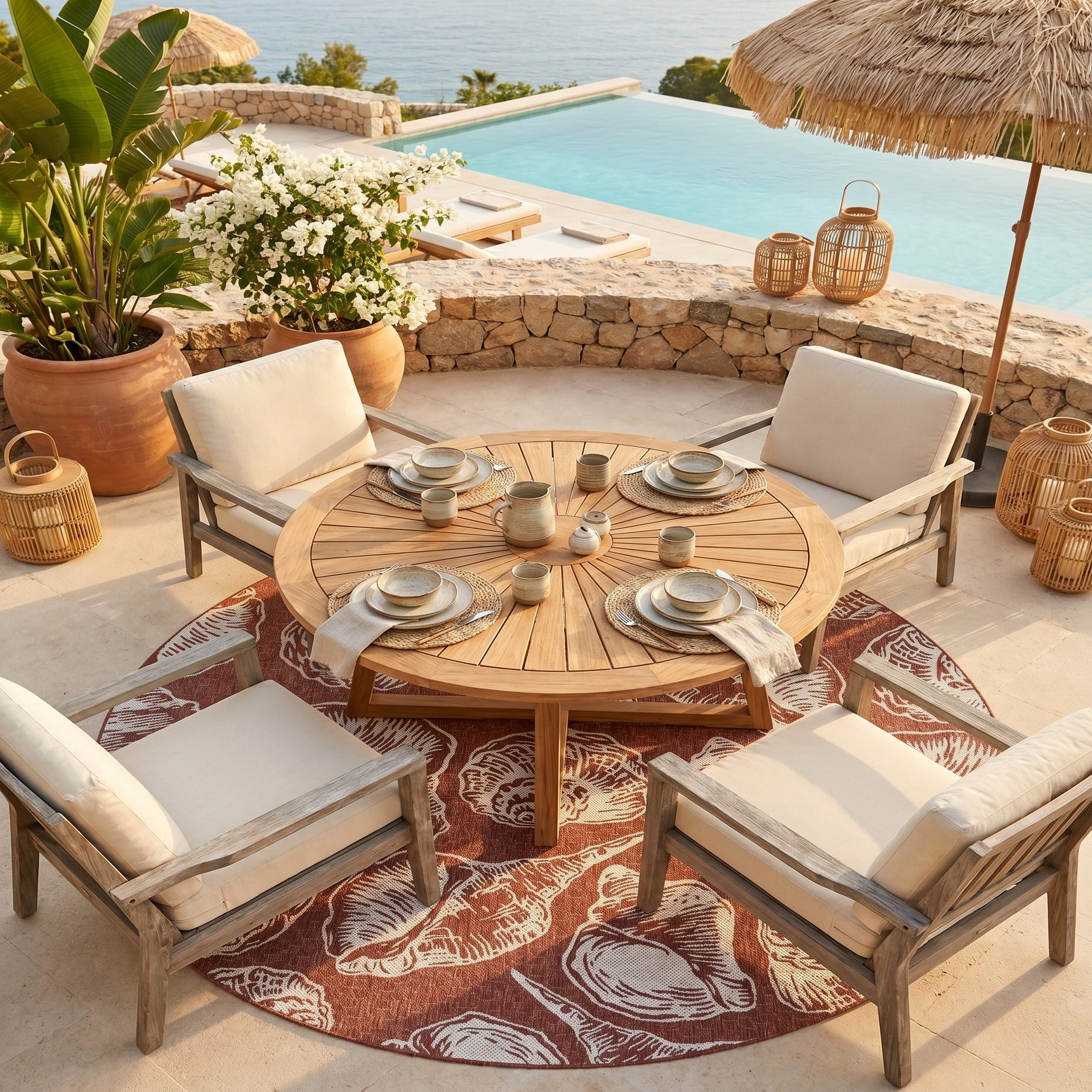 10' x 10' Easy-Clean Coastal Indoor / Outdoor Round Rug