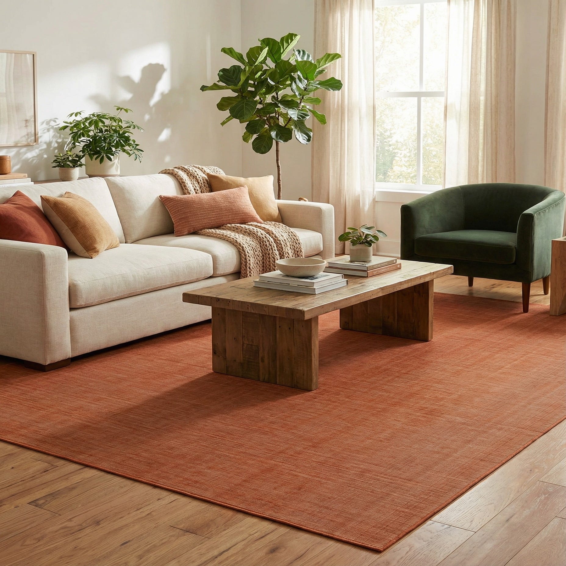 This rug works well as an anchor in contemporary and mid-century living rooms, under a dining table to add warmth to a neutral palette, or layered in a bedroom to introduce a soft, tonal backdrop. Pair it with natural wood furniture, cream or warm gray upholstery, and brass or matte black accents for a balanced, modern aesthetic; it also complements softer, bohemian textiles when you want a grounded, cohesive foundation.