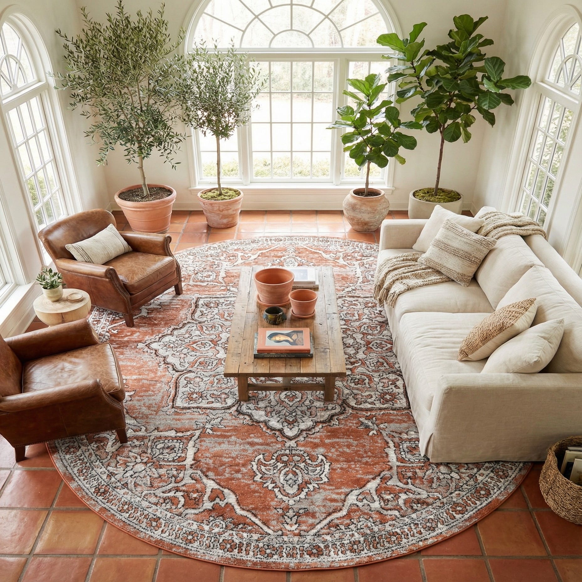 The oval shape works beautifully beneath a round dining table, as an anchor for a living room seating area, or layered in a bedroom to introduce color and pattern. Pair it with warm wood tones and brass accents for a cozy, collected feel, or combine it with gray upholstery and black-trimmed furniture for a more graphic, modern-traditional mix. Its durable construction makes it well suited to rooms where style and everyday functionality meet.