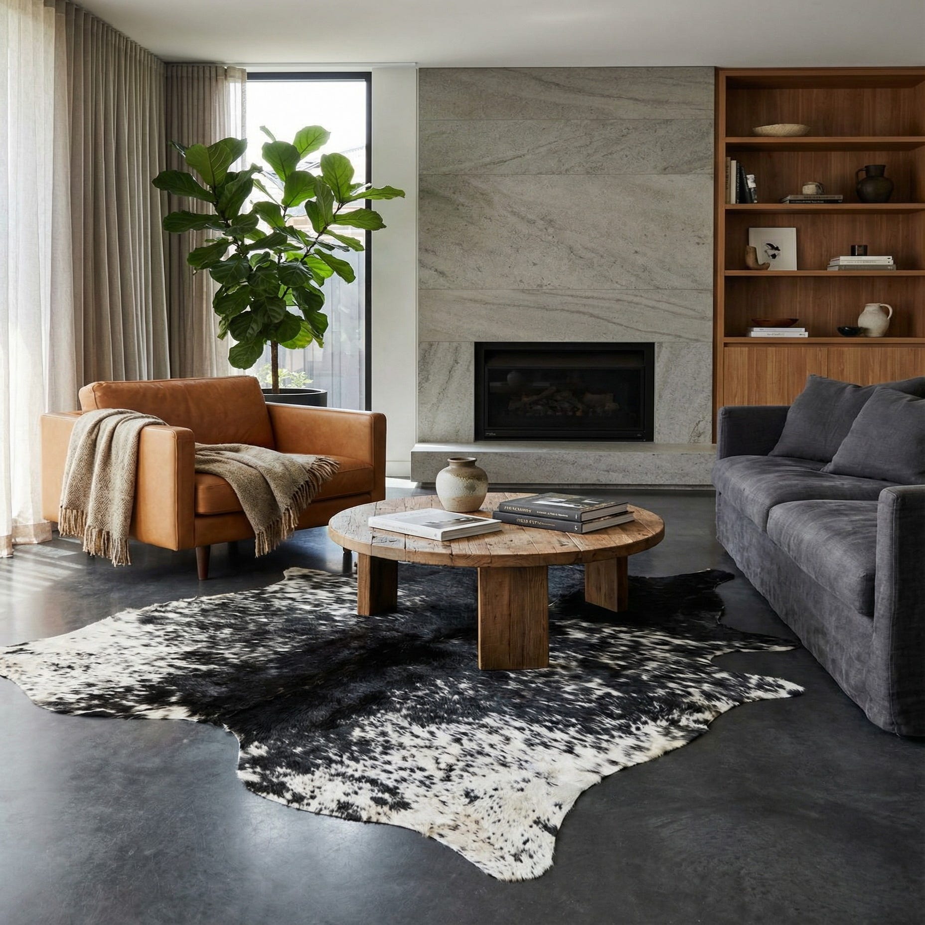5' 3 x 5' 9 Cowhide Leather Square Rug