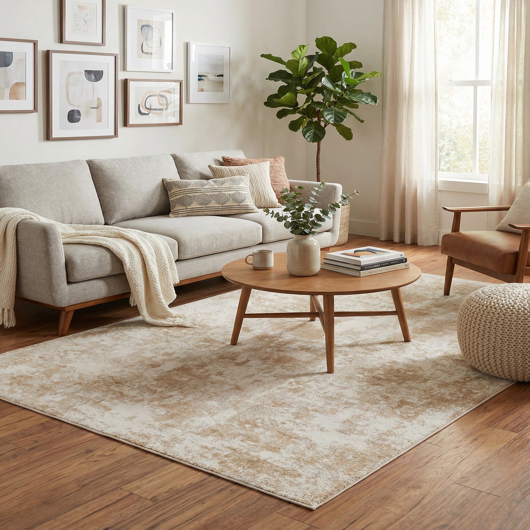 This neutral palette and understated texture make the rug a versatile anchor for a variety of interiors — place it beneath a sofa and coffee table in a contemporary living room, layer it under a bed to soften a serene bedroom scheme, or set it in an entryway to keep the look bright and welcoming. It pairs especially well with light woods, linen upholstery, rattan accents, and matte metal finishes, complementing Scandinavian, coastal, modern, and transitional decor.