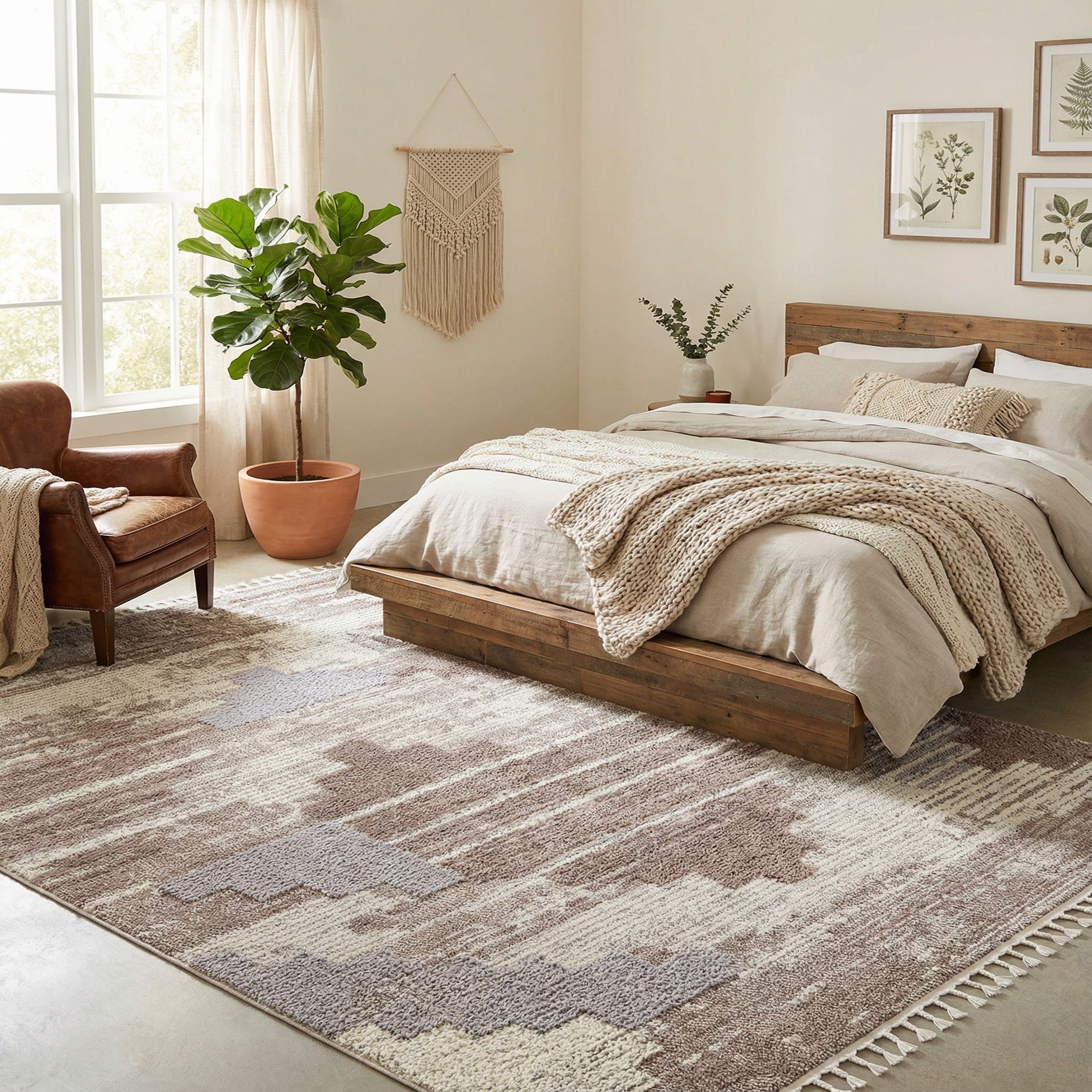 Made from 100% polypropylene, the surface feels soft underfoot while holding the pattern definition crisply. Place it under a low coffee table to anchor a living area, layer it in a bedroom to add warmth to hardwood floors, or use it in an entry or dining space to introduce neutral texture. It pairs naturally with light woods, leather seating, linen textiles and matte metal accents—an easy choice for Scandinavian, modern farmhouse, transitional, or relaxed boho interiors.