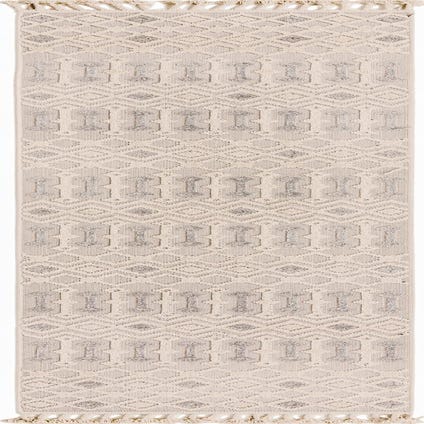 This rug features a soothing palette of sandy beige, complemented by hints of beige and gray, creating a harmonious color scheme that is versatile and understated. Its background color in sandy beige acts as a neutral base, allowing the geometric patterns to stand out. The texture of the rug adds depth and interest to the design, bringing a tactile dimension to the piece.