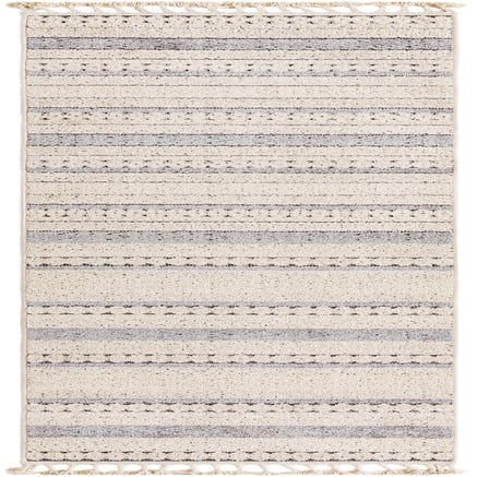 Machine-made from 100% polypropylene, the surface offers a low-profile, textured hand with looped accents and a gentle, tactile feel underfoot, finished with knotted fringe at each end. Place this runner in a hallway or entry to add quiet pattern without overwhelming a space, tuck it into a narrow kitchen or laundry room for added warmth, or layer it along a bed or behind a sofa for subtle texture. It pairs especially well with light wood tones, natural linens, matte metal finishes, and interiors leaning toward coastal, Scandinavian, modern farmhouse, or transitional styles.