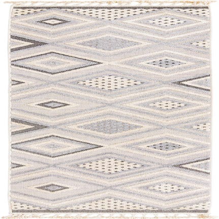 A soft Sandy Beige field provides a warm, neutral backdrop for a layered geometric pattern of diamonds and chevrons in beige, gray and black. The design alternates low-woven herringbone bands with raised, tufted diamond motifs that add depth and tactile contrast across the runner. Fringed ends and a mix of looped and cut pile create visible texture you can feel underfoot while the restrained palette keeps the overall look calm and versatile.