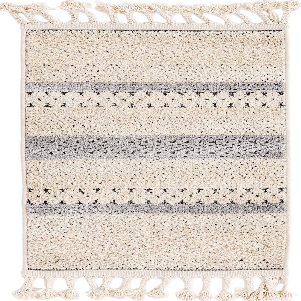 Primary color is Sandy Beige. Colors in this rug include: Sandy Beige, Beige, Black, Gray.