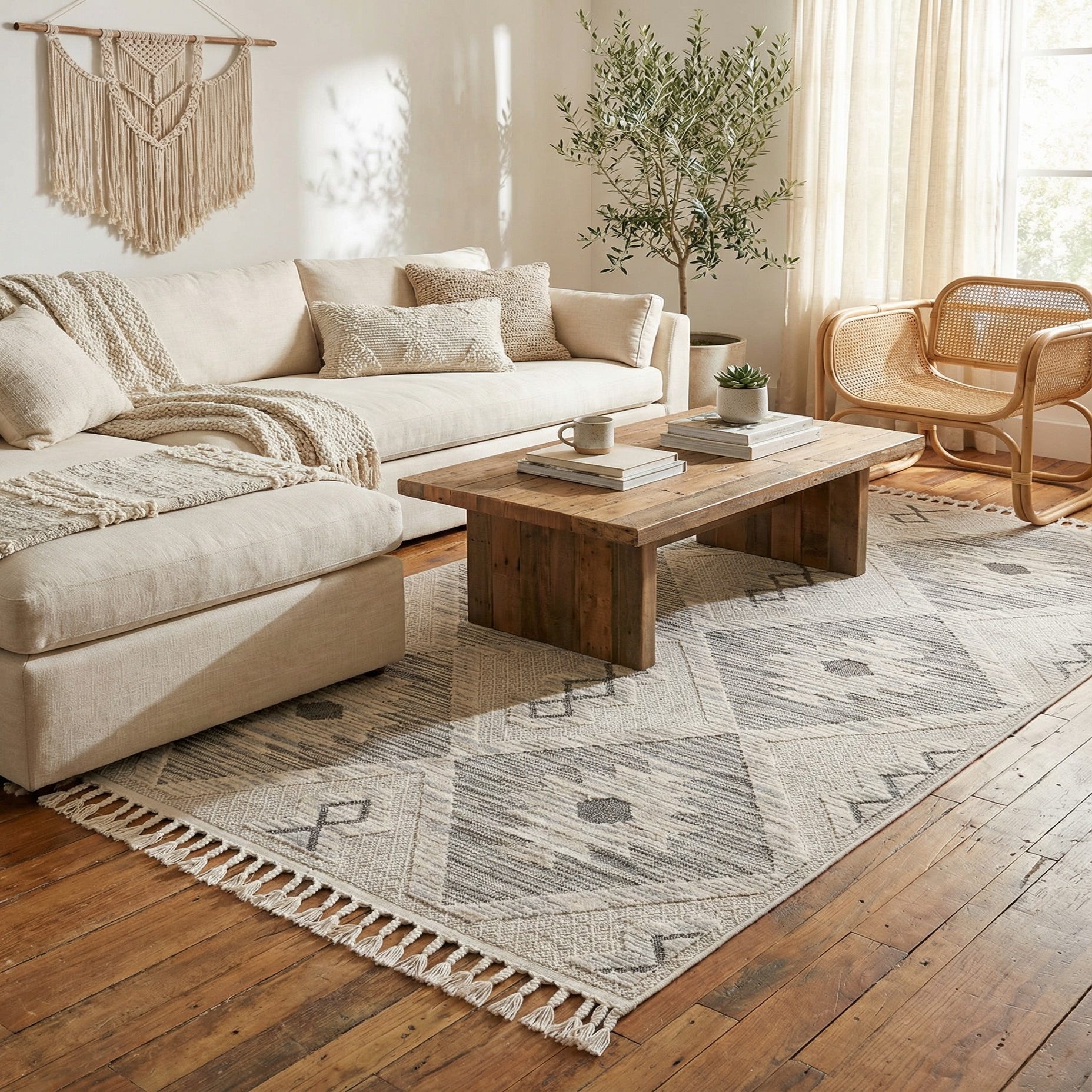 Machine made of 100% polypropylene, this low-profile rug combines a soft hand with resilient construction, making it a practical choice for everyday rooms. It pairs naturally with light wood furniture, linen upholstery and muted gray accents, and fits well in modern farmhouse, Scandinavian, coastal, or transitional interiors. Use it to anchor a living room seating area, layer beneath a bedroom set, or soften an entryway without overpowering other elements in the room.