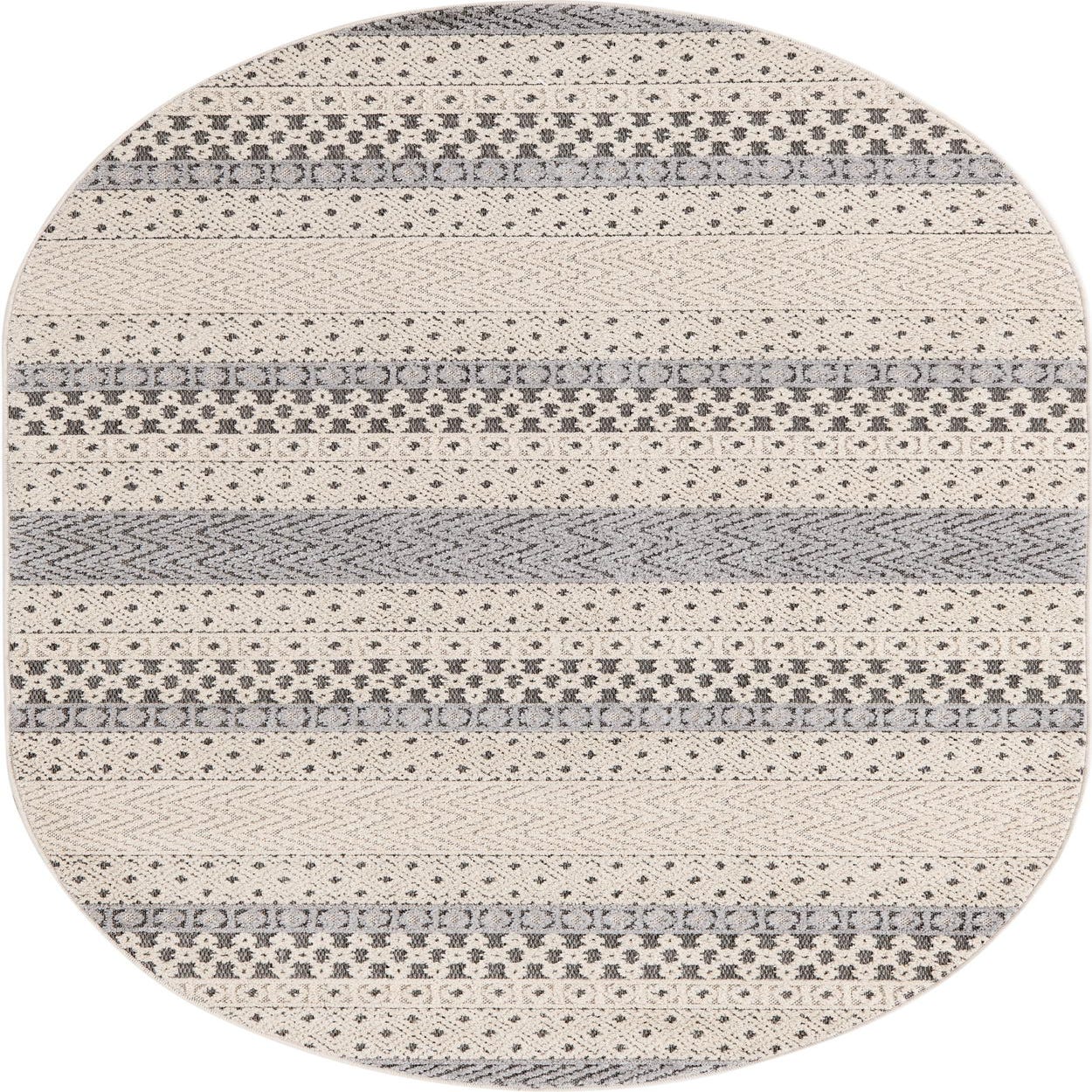 The oval silhouette works well to soften straight lines in a room and can anchor a seating group, sit beneath a round dining table, or add pattern to a bedroom or entry. The neutral palette and pared-back motifs pair easily with coastal, Scandinavian, modern farmhouse, or casual contemporary décor, bringing quiet pattern and a comfortable underfoot presence to everyday spaces.