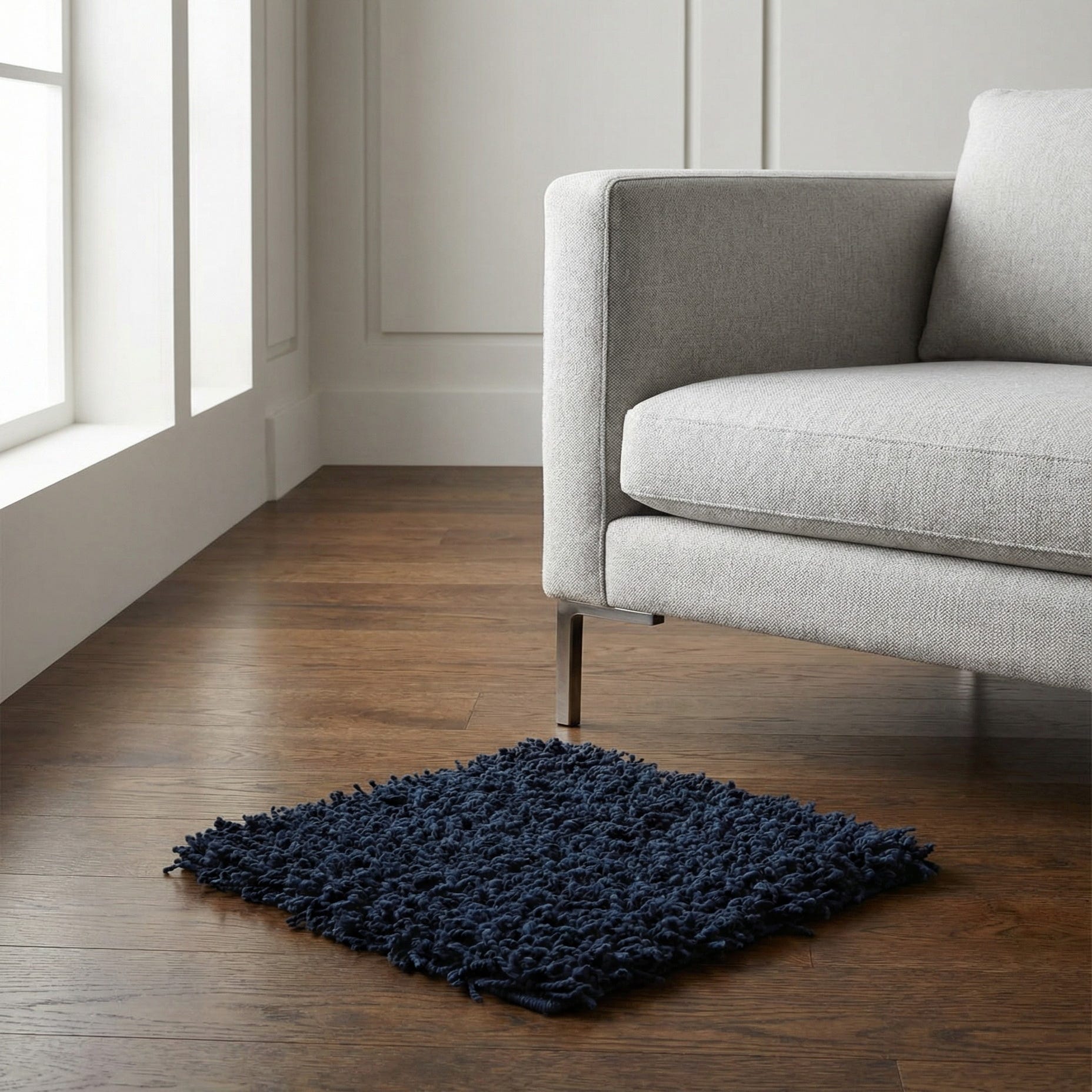 This shag works well in bedrooms and media rooms where a soft underfoot layer enhances comfort, and it anchors living spaces with neutral or light-colored seating to create contrast. Pair it with warm wood furniture and brass or chrome accents for a modern-luxe look, or use it in a coastal or nautical scheme alongside crisp whites and linen textures to reinforce a blue-focused palette. As a sample, it’s ideal for testing how the deep Sapphire and Navy tones interact with your existing finishes and lighting.