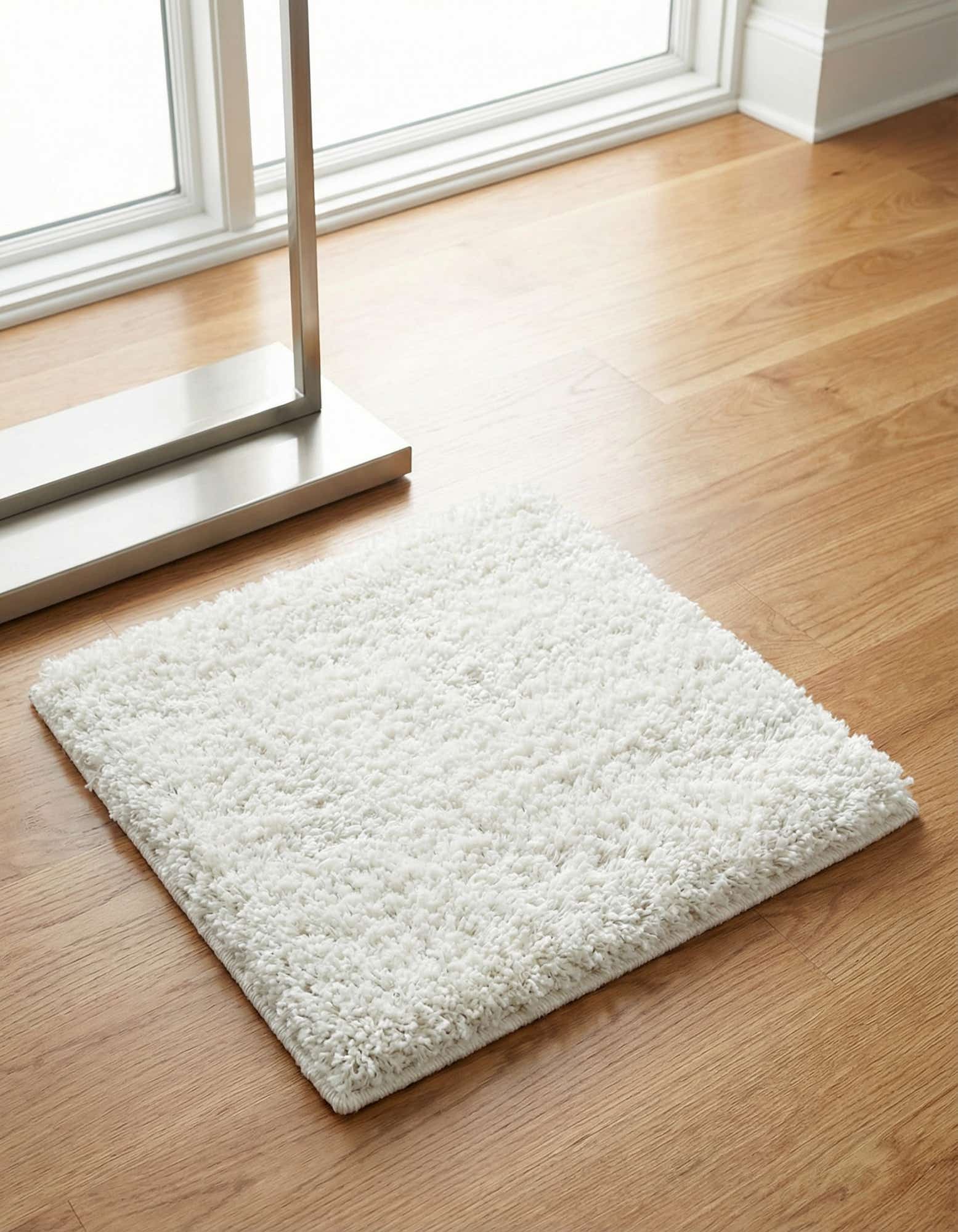 Machine made of 100% polyester (space-dyed yarn). This piece is a sample. Its quiet palette and cozy pile make it a good choice for minimalist living rooms or modern bedrooms where a light, airy base is desired. It also pairs well with coastal, Scandinavian, or contemporary interiors—place it under a low-profile sofa to anchor a seating area, layer it over a larger natural-fiber rug for textural contrast, or use it beside the bed for a soft landing in the morning.