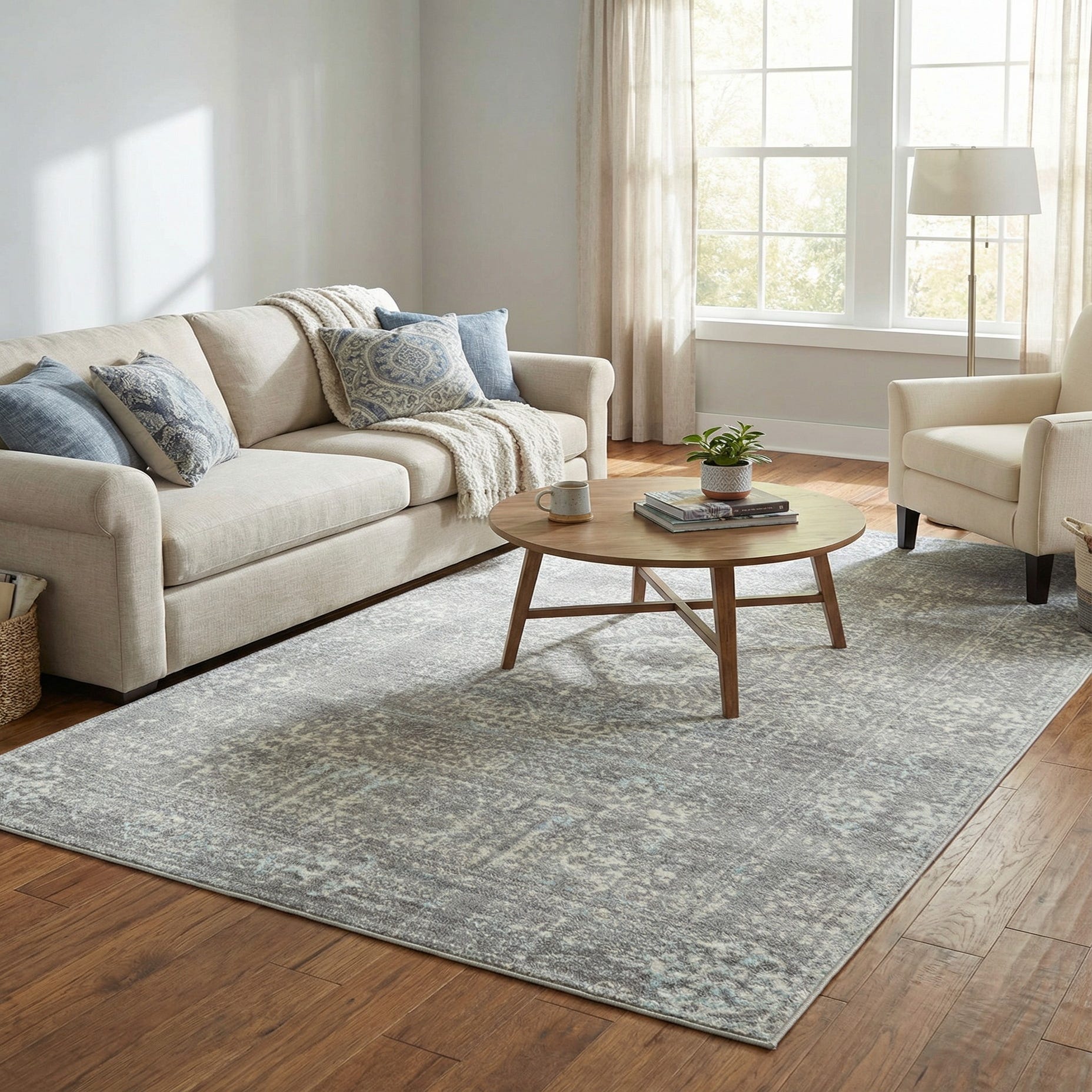 This subdued palette and classic pattern work well in a range of interiors: anchor a seating area in a contemporary living room, layer under a bed in a serene bedroom, or place beneath a dining table to soften the space. Pair it with light- to medium-toned wood floors and linen or leather upholstery for a balanced look, or use navy and charcoal accents for a touch of contrast. The understated finish also complements both modern and transitional furnishings, making it an easy choice for updating existing decor.