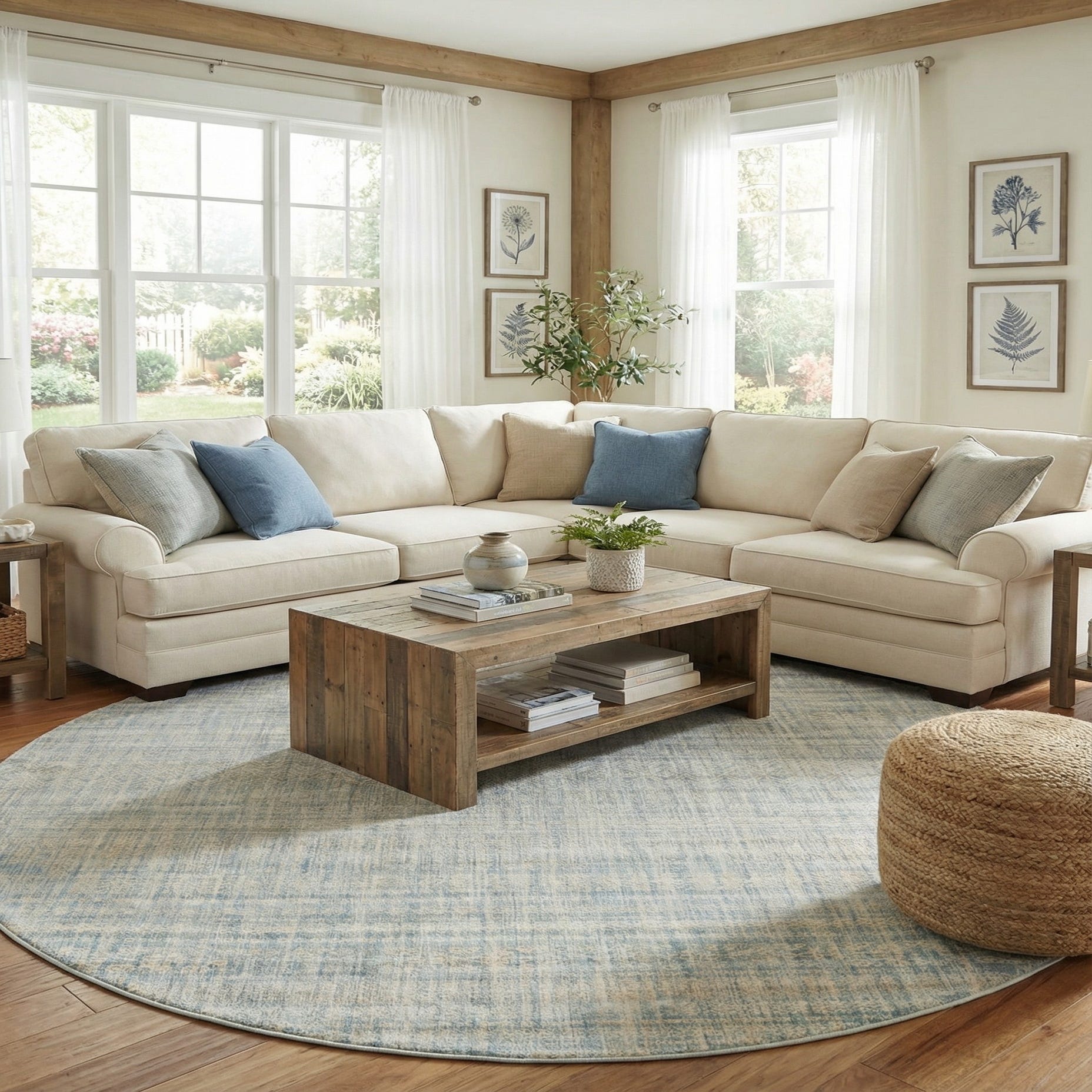 Machine made of 100% polypropylene (space-dyed yarn), this rug brings understated color and texture to a variety of interiors. It anchors a round coffee table in a neutral living room, warms a bedroom with pale woods and soft linens, or defines a cozy breakfast nook beneath a small dining set. Pair it with coastal, Scandinavian, modern farmhouse, or transitional decor—think light woods, muted blues, and simple metallic accents for a cohesive look.