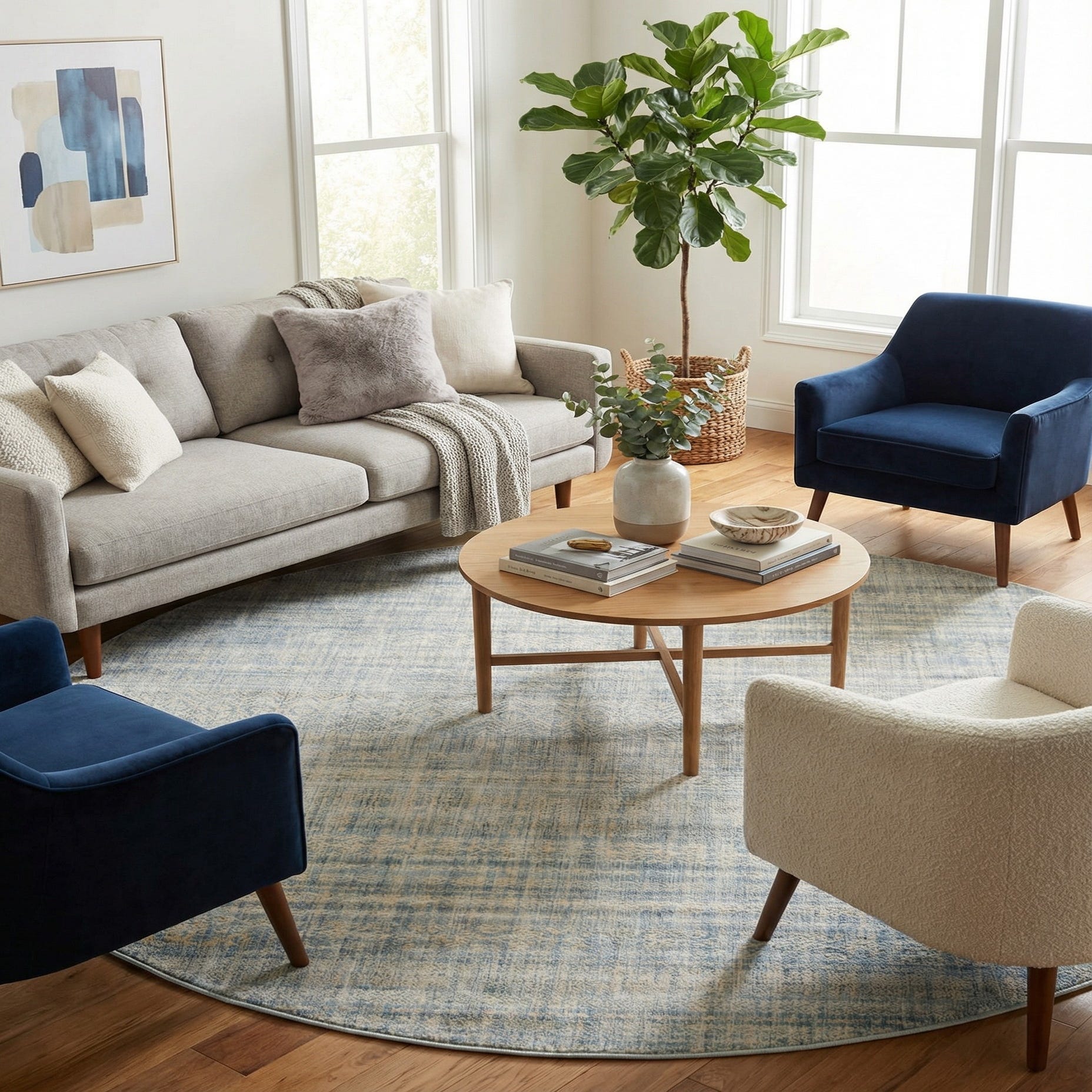Machine made of 100% polypropylene (space-dyed yarn), this rug brings understated color and texture to a variety of interiors. It anchors a round coffee table in a neutral living room, warms a bedroom with pale woods and soft linens, or defines a cozy breakfast nook beneath a small dining set. Pair it with coastal, Scandinavian, modern farmhouse, or transitional decor—think light woods, muted blues, and simple metallic accents for a cohesive look.