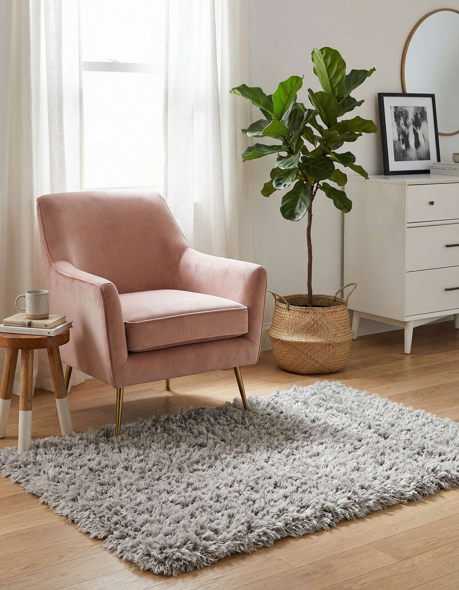 Machine made of 100% polyester, the yarns have a soft, slightly lustrous hand that cushions underfoot and creates a gentle sheen when brushed. Its full pile works well layered over hard flooring or in front of seating to add comfort and quiet the room. Style it in a modern living room with streamlined furniture and metal or glass accents, a cozy bedroom layered with textured throws and linens, or a transitional entry and reading nook where a soft, neutral foundation is desired.