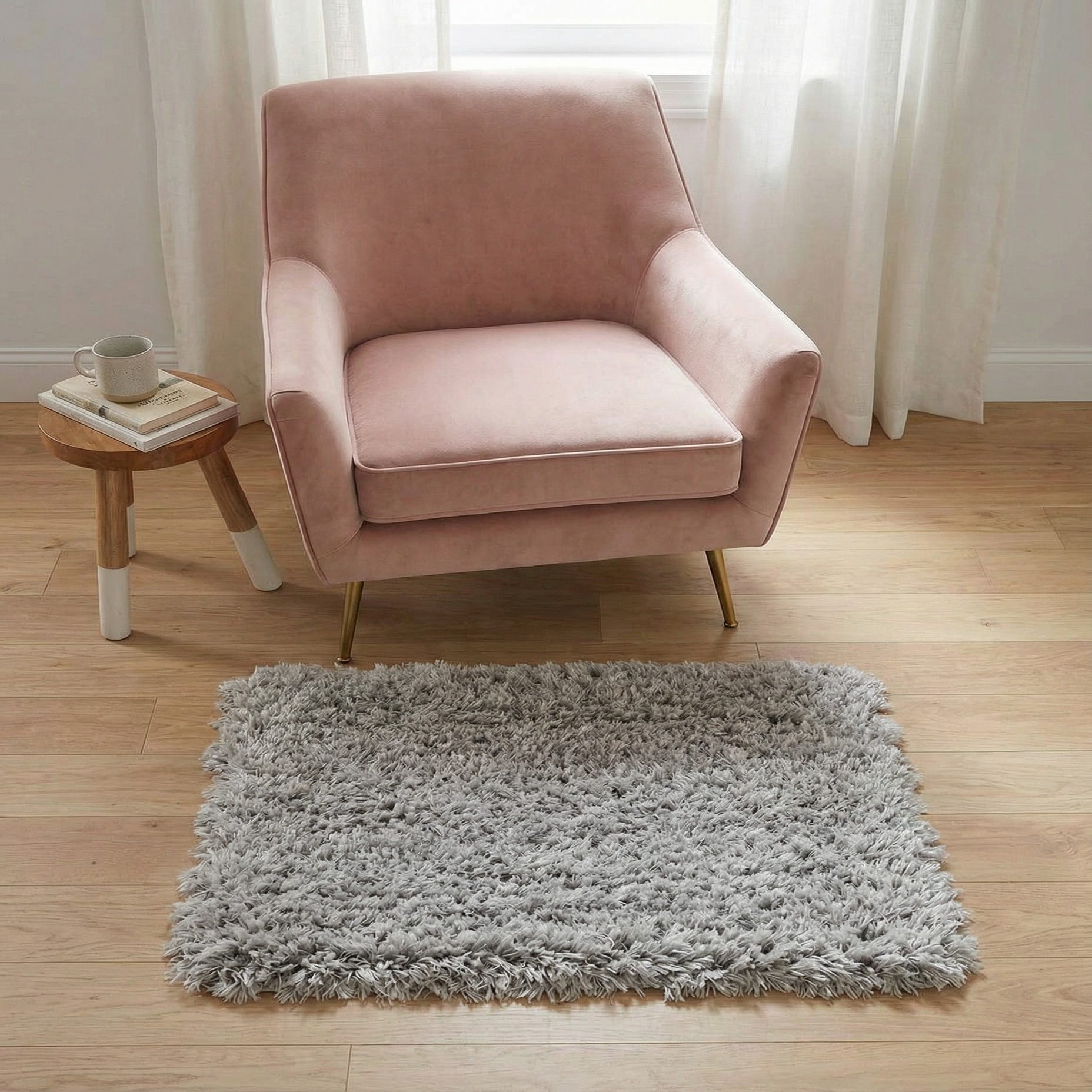 A plush, high-pile shag with a clean, contemporary look, this rug presents a uniform field in Silver Screen with subtle tonal shifts created by the varying pile direction. The overall pattern is intentionally minimal — the texture itself provides the visual interest, producing a soft, cloud-like surface that still reads modern and restrained. The neutral Silver Screen background pairs easily with both warm and cool palettes.