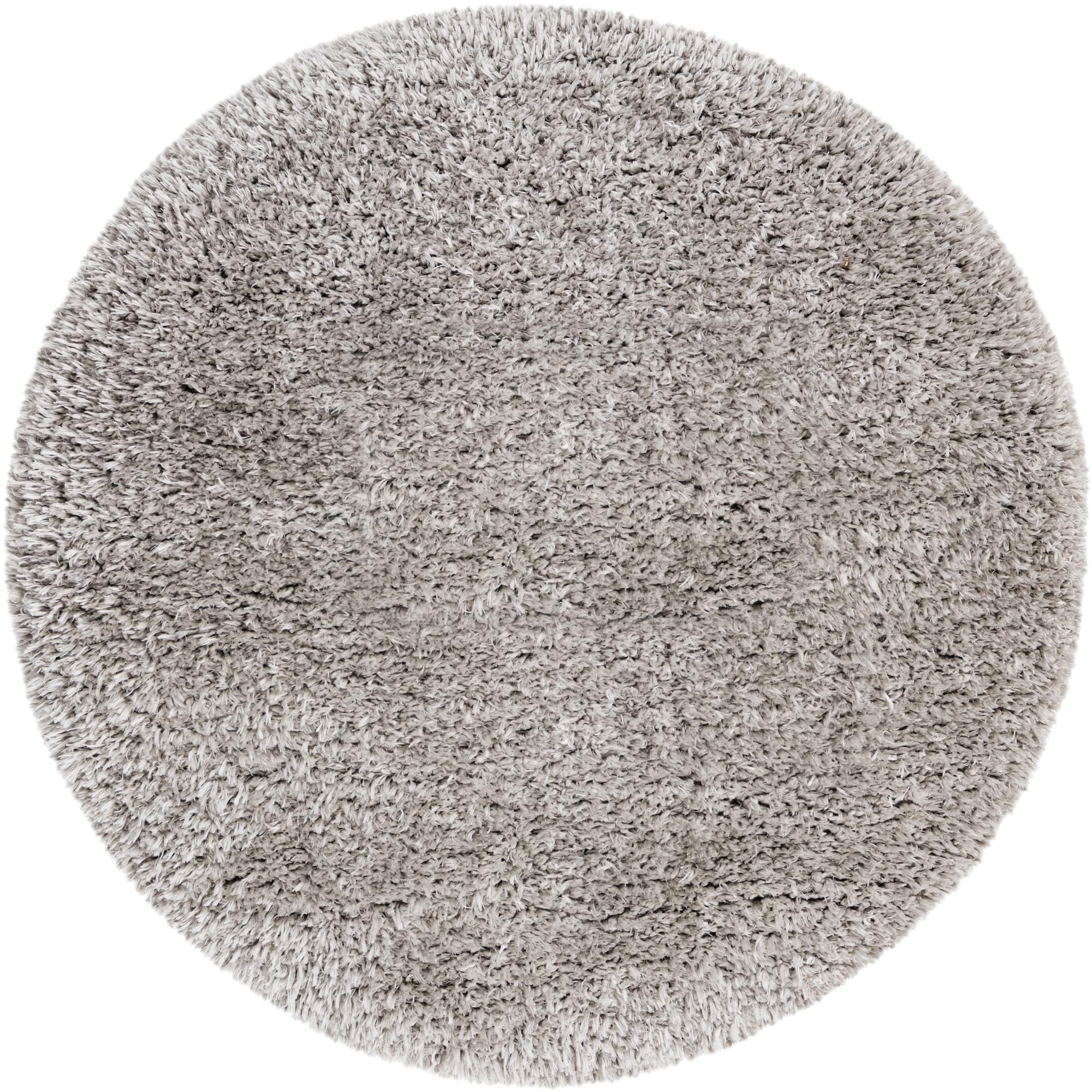 A soft, plush 3' 3 x 3' 3 round gray shag rug, perfect for adding comfort to any indoor space.