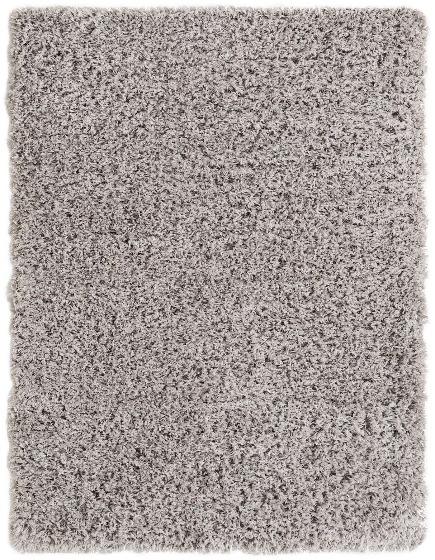 A dense, high-pile shag in a soft Silver Screen creates a plush, uniform surface that adds immediate warmth and tactile interest to a room. Machine made from 100% polyester, the twisted fibers form a deep, cushiony pile that feels soft underfoot while retaining a subtle, slightly variegated look where light plays across the yarn. The design is clean and uncomplicated—a solid shag texture rather than a printed motif—so it brings texture without competing with other patterns.