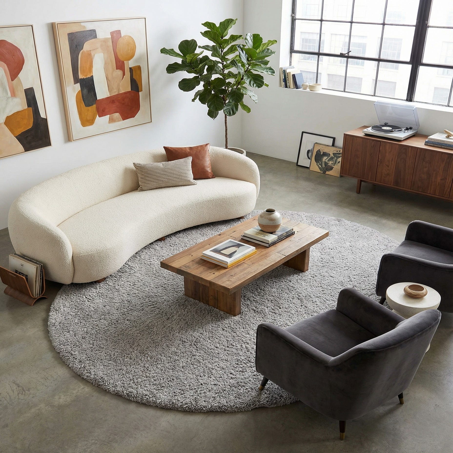 This rug works well layered under a round or oval coffee table, tucked beneath a reading chair, or placed beside a bed to add a warm, cushioned landing. Its neutral tone and contemporary shag profile suit modern, Scandinavian, and transitional interiors, and it pairs nicely with light woods, matte metals, or crisp white upholstery for a calm, collected look.