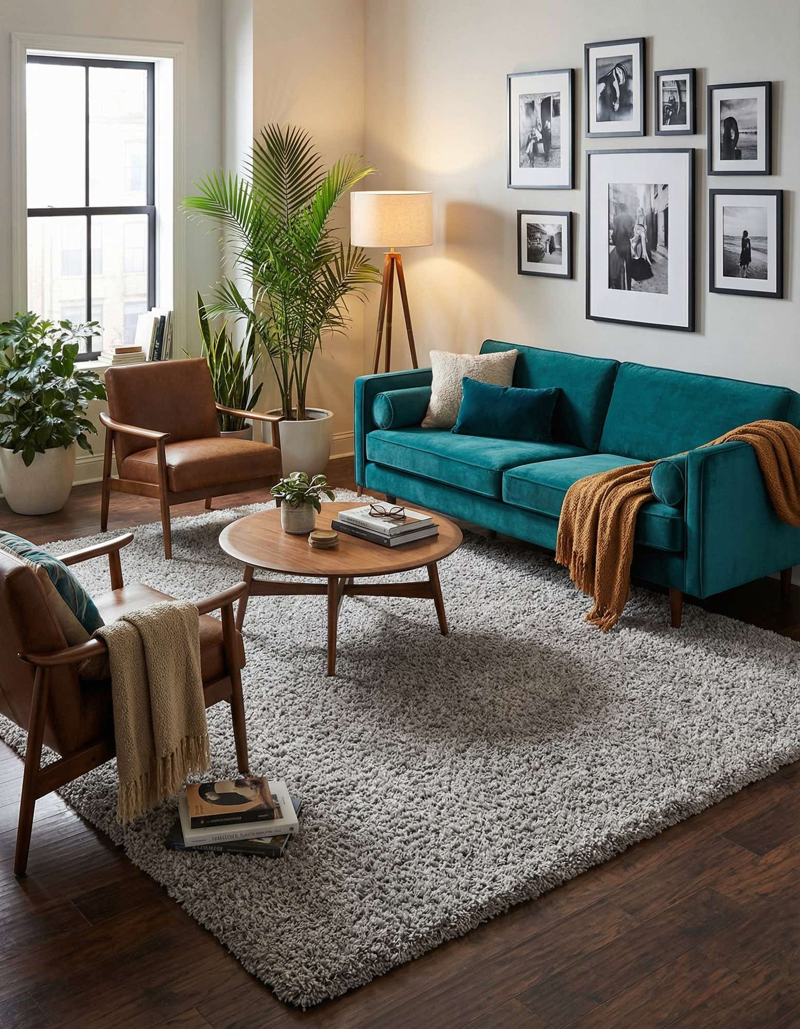 This rug works well as an anchor in a living room seating area, a plush layer beside the bed, or a cozy addition to a media room or home office. It pairs naturally with mid-century and modern furnishings, blends with metallic and glass accents for a subtle glam touch, and softens minimalist or Scandinavian interiors while coordinating easily with both cool tones like navy and slate and warmer wood finishes.