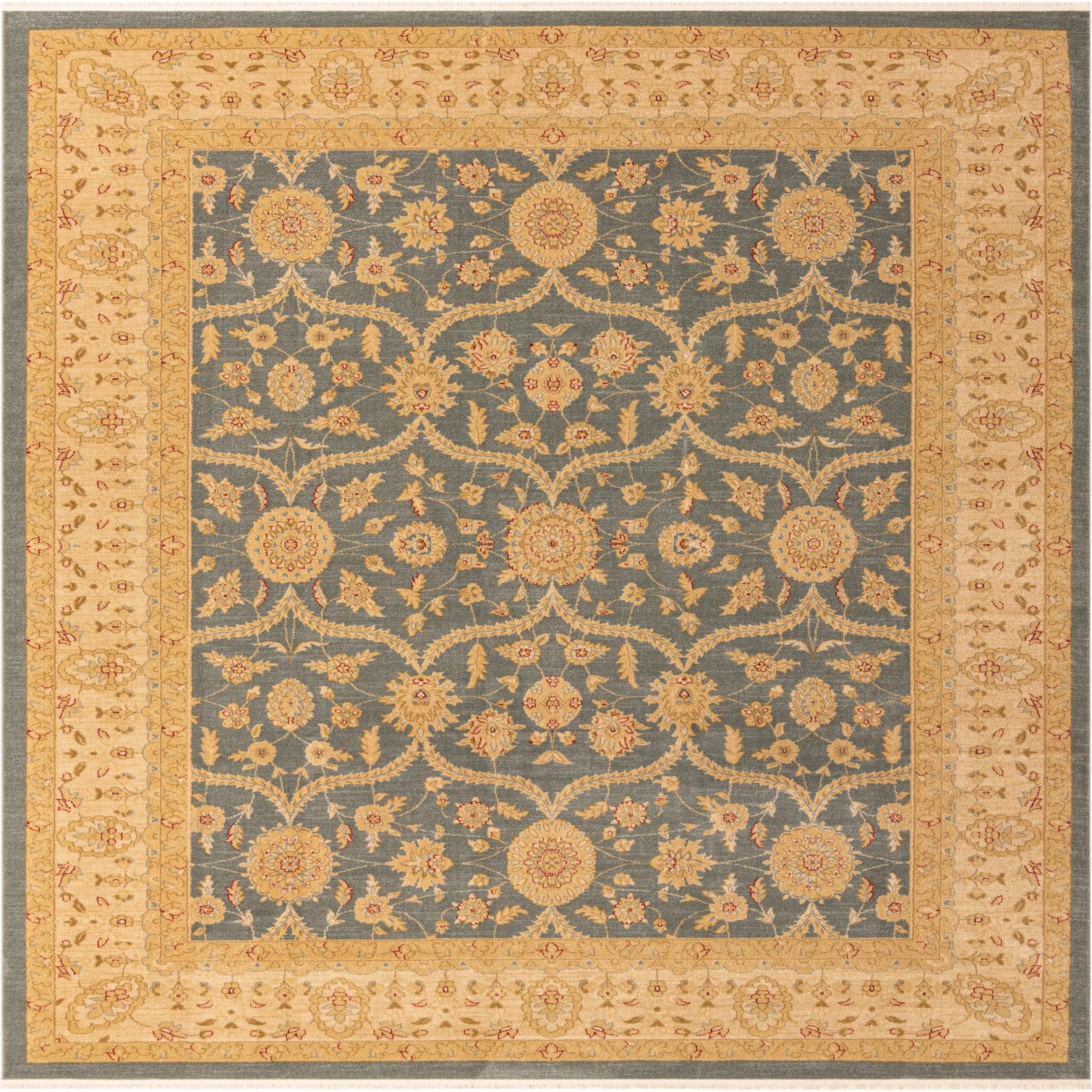 Primary color is Blue. Colors in this rug include: Blue, Cream, Light Brown, Rust Red, Olive.